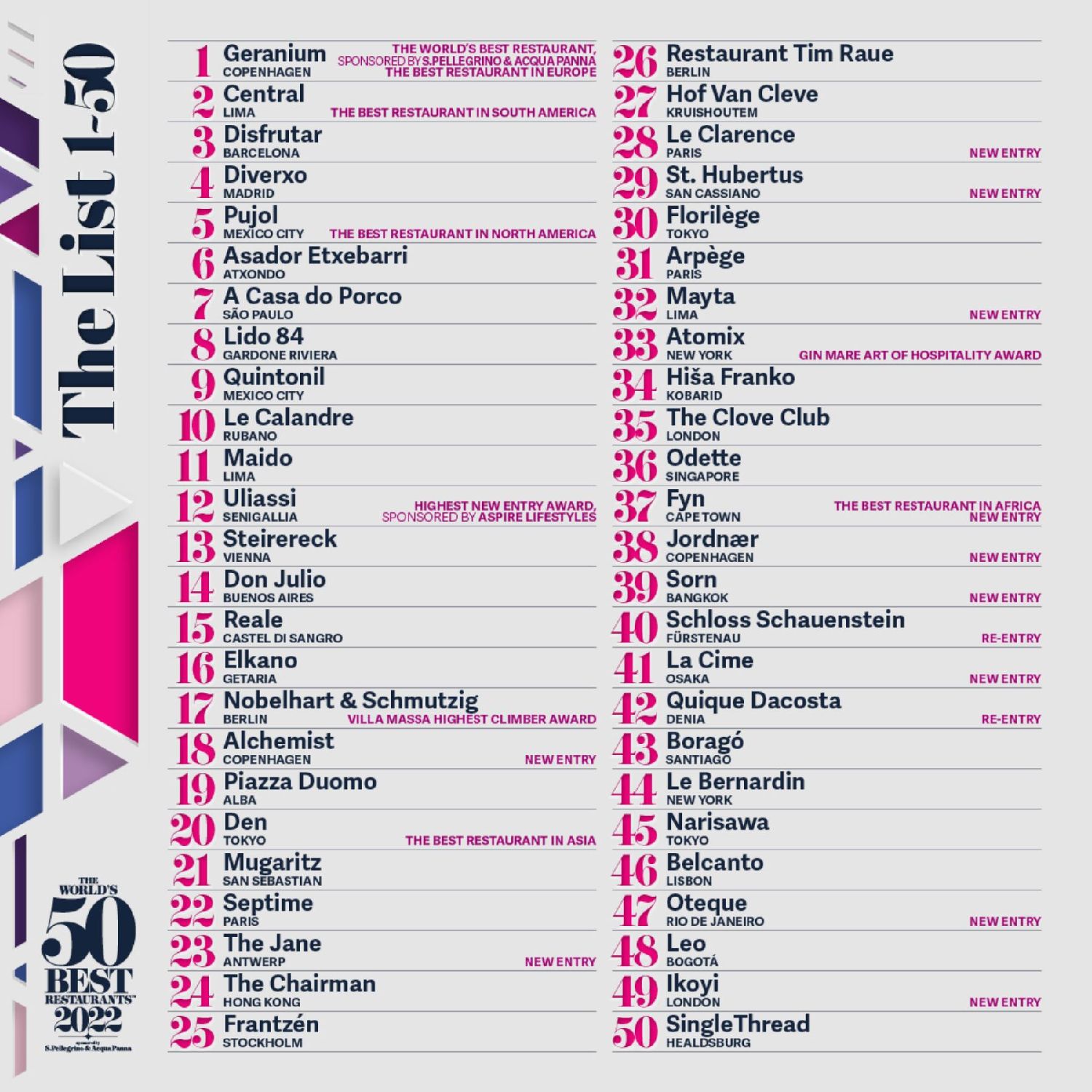 排名第32位是秘鲁人Jaime Pesaque的Mayta,是首次进入50强。
