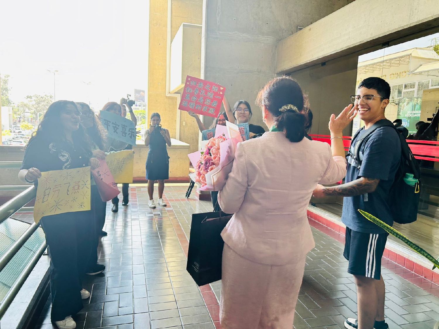 中秘文化协会主席爱德华多·永·莫塔先生、《秘华商报》社长、古冈州会馆主席邓振棠先生、秘鲁华人头条社社长潘承遵先生、河北省政协海外委员刘雷先生等及里卡多帕尔玛大学近百位师生参加了欢送会,有多位学生在门口高举横幅欢送,对张惠珍院长离开表示依依不舍,场面感人!