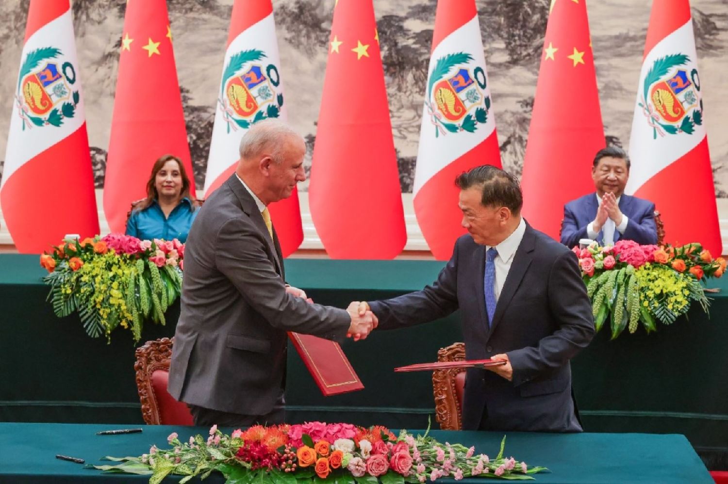 作为秘鲁驻中华人民共和国代表团活动的一部分,谅解备忘录的签署在北京举行,中央广播电视总台总台长慎海雄和秘鲁外交部长哈维尔·冈萨雷斯-奥莱切亚·佛朗哥(Javier González-Olaechea Franco)出席了签署仪式,秘鲁外长代表IRTP执行主席尼诺斯卡·钱迪亚·罗克(Ninoska Chandía Roque)签署了该协议。