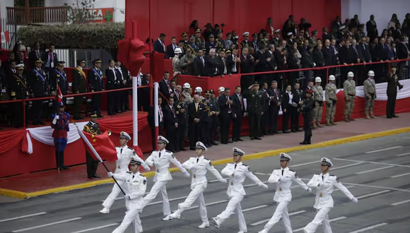 中国人民解放军海军大连舰艇学院的人员组成参加2024年秘鲁国庆阅兵仪式的代表团,他们是:胡波、张福雨、苗奕宁、周宇帆、刘硕、梁斌、李康麒、余学斌。他们身着白色军装,在巴西大道行进时,所经之处皆是秘鲁民众和中国同胞热烈的掌声和欢呼。