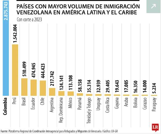 一些国家更新了2024年的数据,据悉,截至今年1月,哥伦比亚这一数字上升至285万。截至2024年1月,在哥伦比亚正常状态的委内瑞拉难民和移民人数为2,293,006人,其中正在办理临时保护法的有384,312人,已签发临时保护许可证(PPT)的有1,908,694人。