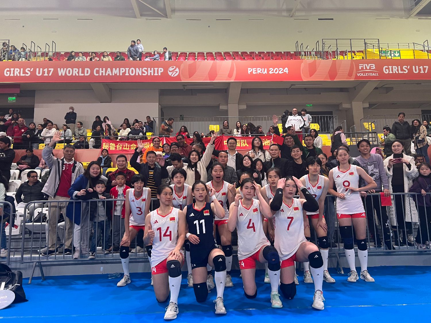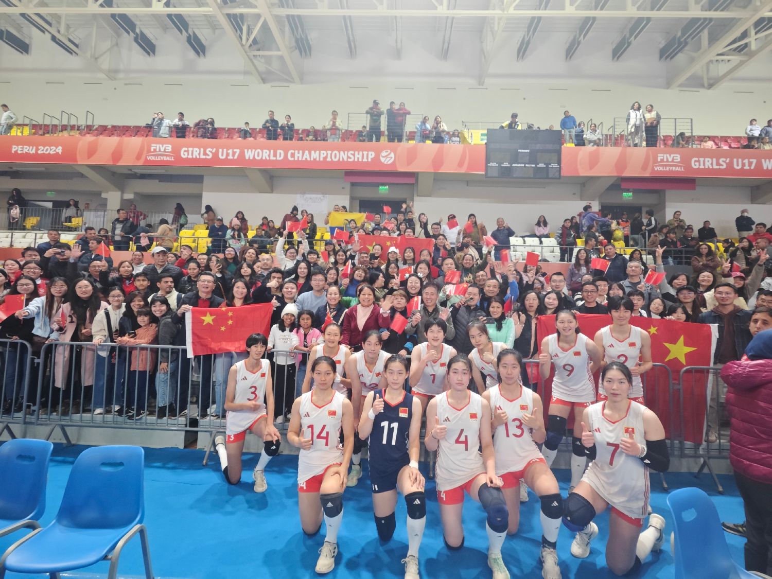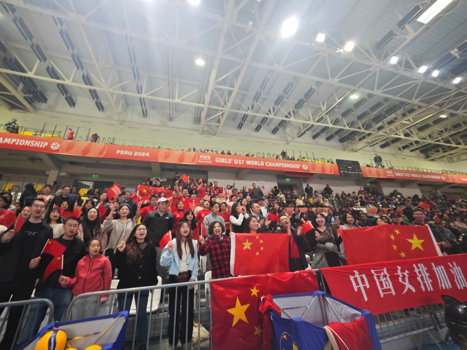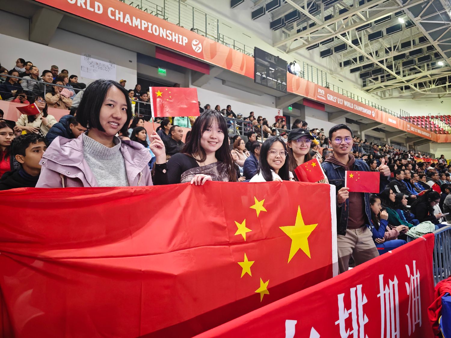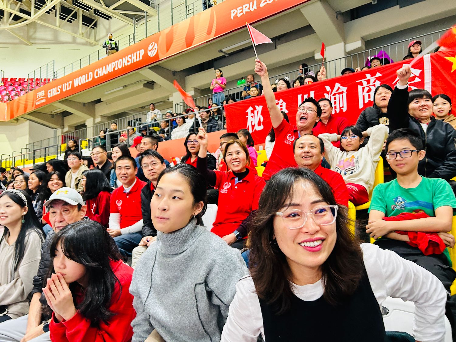 那一刻全场沸腾,大家从观众席上站起来,挥舞着手中的五星红旗,现场成为一片充满喜悦的红色海洋,中国力量和团结一致的民族精神在遥远的秘鲁得到了具象化展现。