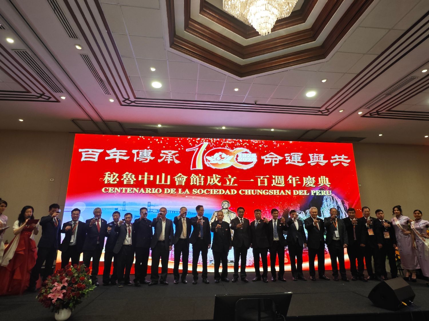 百年庆典之际,大家欢聚一堂,共同庆祝秘鲁中山会馆成立100周年。这是一个具有非凡意义的时刻,见证了中山会馆百年来在秘鲁社会的重要地位与贡献,也体现了旅秘华侨华人对中华文化的坚定传承和对秘鲁社会的深厚融入。