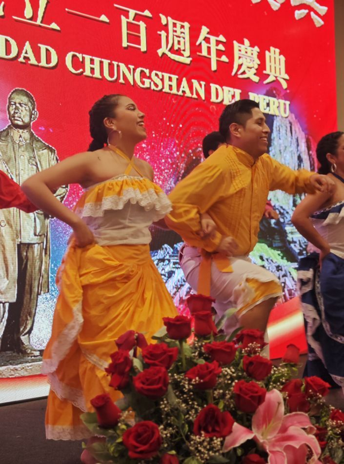中山会馆为来宾们组织了丰富的文艺演出,富有秘鲁当地风情的Festejo、Valicha、Diabla Punena民族舞蹈;101舞蹈团带来了《美丽中国》、汉服秀、《弥度山歌》充满中国文化元素的表演;秘鲁歌唱演员Marcela演唱了《青藏高原》,并与萧孝权合唱《铁血丹心》,赢得现场热烈掌声;曾明通献唱《苹果香》、冼楚堃演唱《故乡的月光》《亲吻祖国》、占健凡献唱《小李飞刀》,都表达了大家对中山会馆成立百年的庆贺之情。