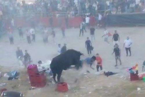 事发时,活动吸引了大量当地居民和游客前来观看。据目击者描述,失控的公牛突破安全防线后,径直冲向观众区,短短几秒内多人被撞倒或踩踏,现场一度陷入混乱与惊恐。视频画面显示,公牛横冲直撞,有人试图用塑料椅和硬物驱赶,但效果有限。