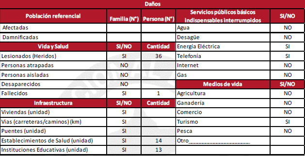 此外,能源和矿业部报告称,地震造成Villa El Salvador、Ventanilla、Ancón和Pachacamac等地短暂停电,Chorrillos的Agua Dulce一带发生落石。