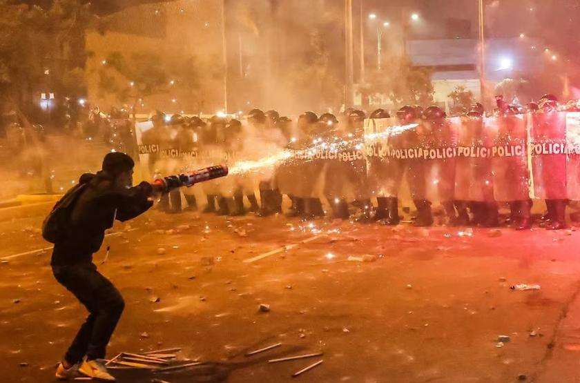 秘鲁利马抗议冲突致一死百余人伤
