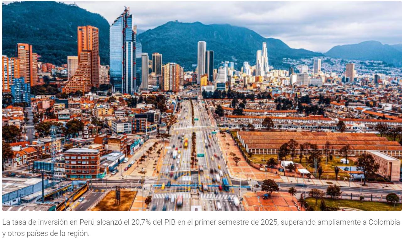 《秘华商报》讯:在投资持续放缓的背景下,哥伦比亚经济研究机构发展研究基金会(Fedesarrollo)近日在报告中将秘鲁视为区域参考案例。报告指出,2025年上半年哥伦比亚投资率降至国内生产总值的16.1%,为20年来最低水平,而秘鲁同期投资率达20.7%,高于哥伦比亚、巴西和智利。