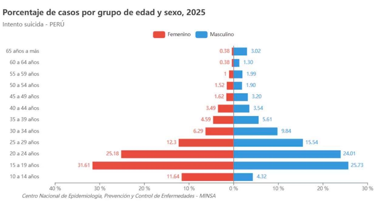 地区方面,利马以1559起居首,其后为库斯科274起、卡哈马卡240起、胡宁234起和阿雷基帕211起。卫生部(Ministerio de Salud Minsa)提醒,民众可拨打113热线选项5或前往社区心理健康中心,获取全年无休的免费专业支持。