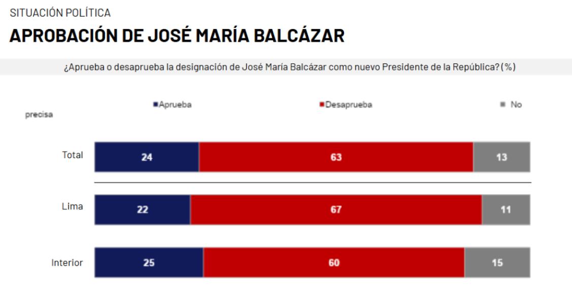 政治分析师何塞·卡洛斯·雷克纳(JoséCarlos Requena)表示,对于由不受欢迎的国会推举的政府,这一民调结果在意料之中。他认为巴尔卡萨尔上任之初表现出“矛盾”和“空洞姿态”,未确定内阁且提及在逃的弗拉基米尔·塞隆(Vladimir Cerrón),均已产生负面影响。民众的选举被视为“国会某一派别的强加”。