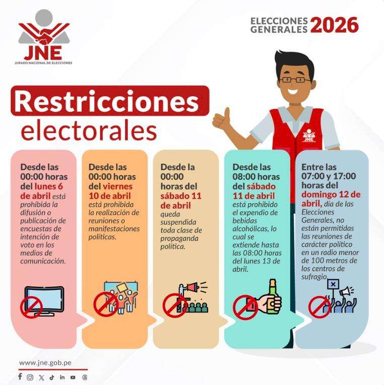 《秘华商报》讯:秘鲁国家选举陪审团(Jurado Nacional de Elecciones)通报,为保障4月12日大选顺利举行,全国将自4月6日起实施多项选举限制措施。