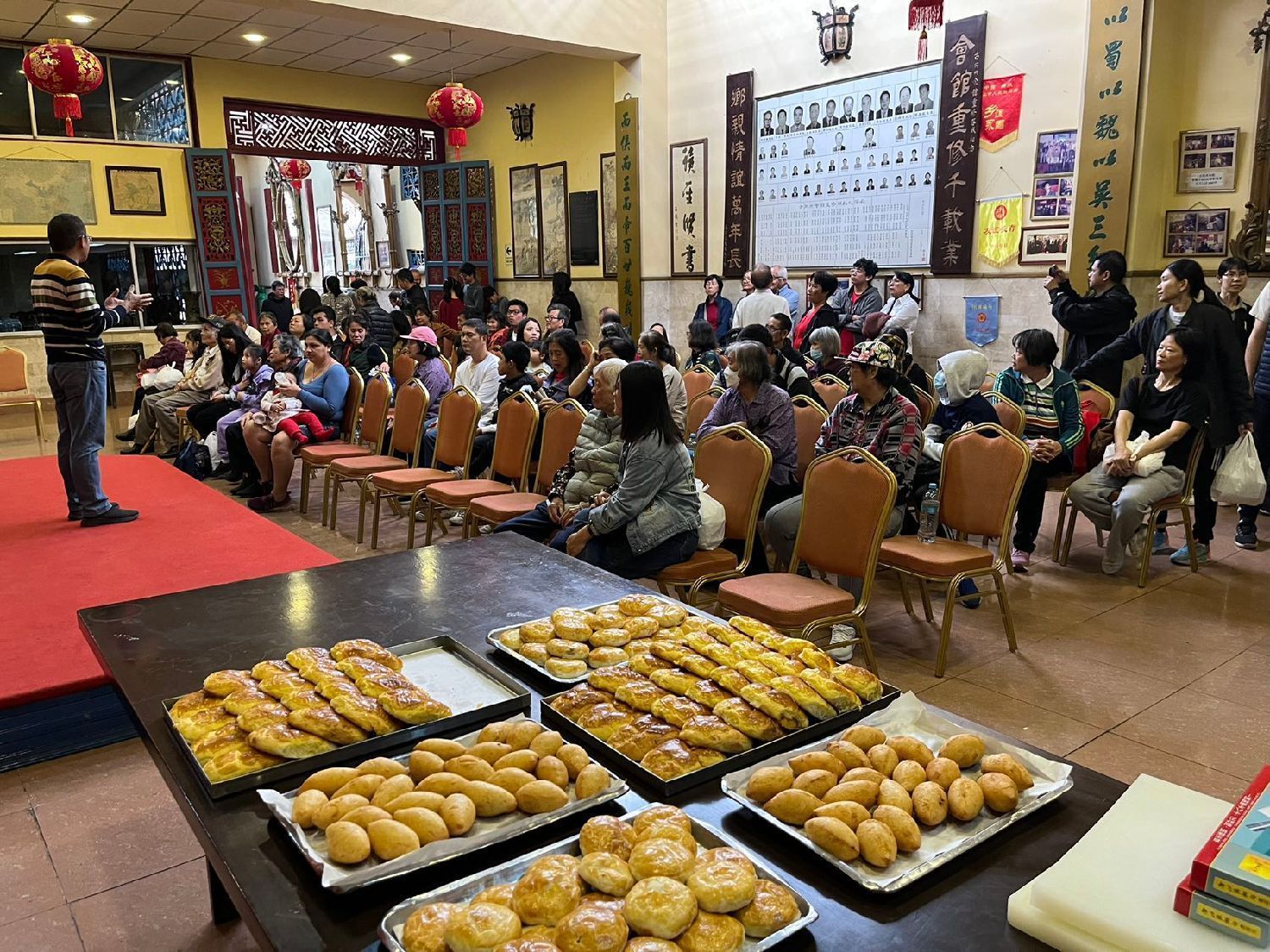 今年古冈州会馆参加人数有将近一百五十人到会馆参加拜祭。鹤山会馆参加人数将近一百人到会馆参加拜祭,古冈州会馆及鹤山会馆的乡亲都各在自家会馆围坐一桌,追忆祖辈的贡献,品尝点心、水果,分享金猪。