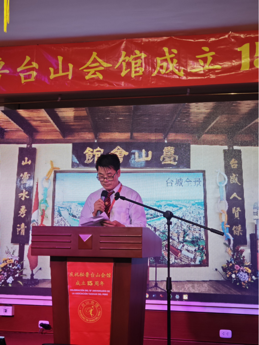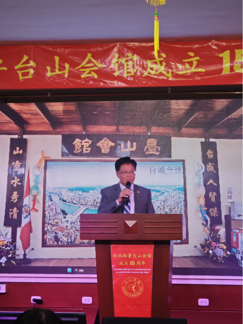 在此,祝贺台山会馆成立十五周年,愿继续发挥桥梁和纽带的作用,积极促进中秘友好,发展与合作共赢,携手同心、勇毅前行,守正创新、踔厉奋发!