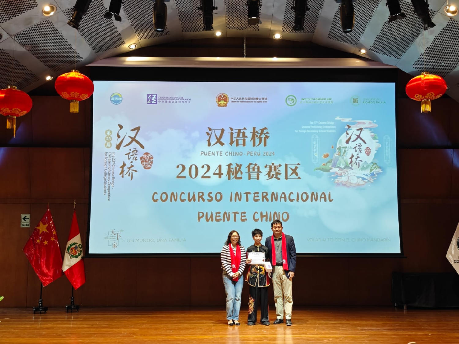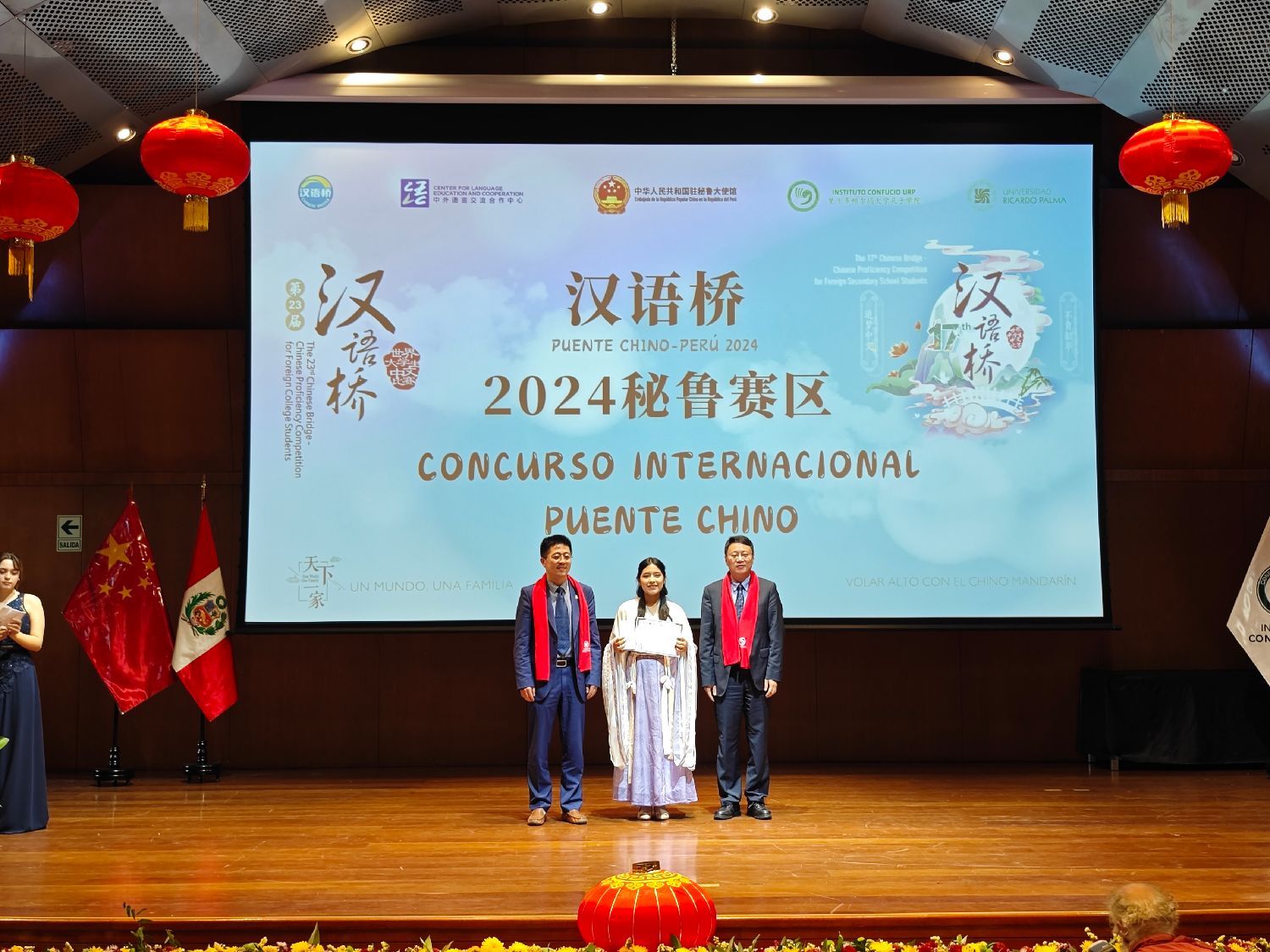 2024年6月15日,由教育部中外语言交流合作中心和中国驻秘鲁大使馆共同主办,秘鲁里卡多·帕尔玛大学孔子学院承办的2024年“汉语桥”世界大学生及中学生中文比赛秘鲁赛区总决赛,在利马Ccori Wasi文化中心圆满落幕。