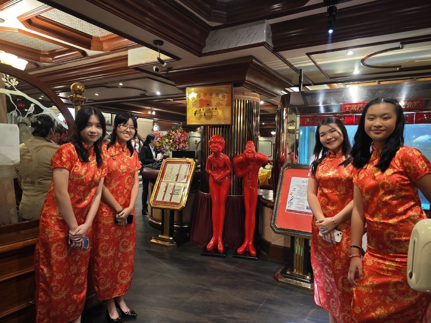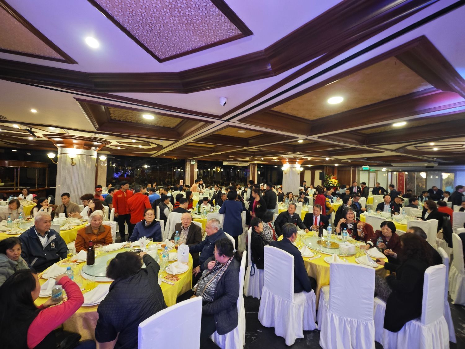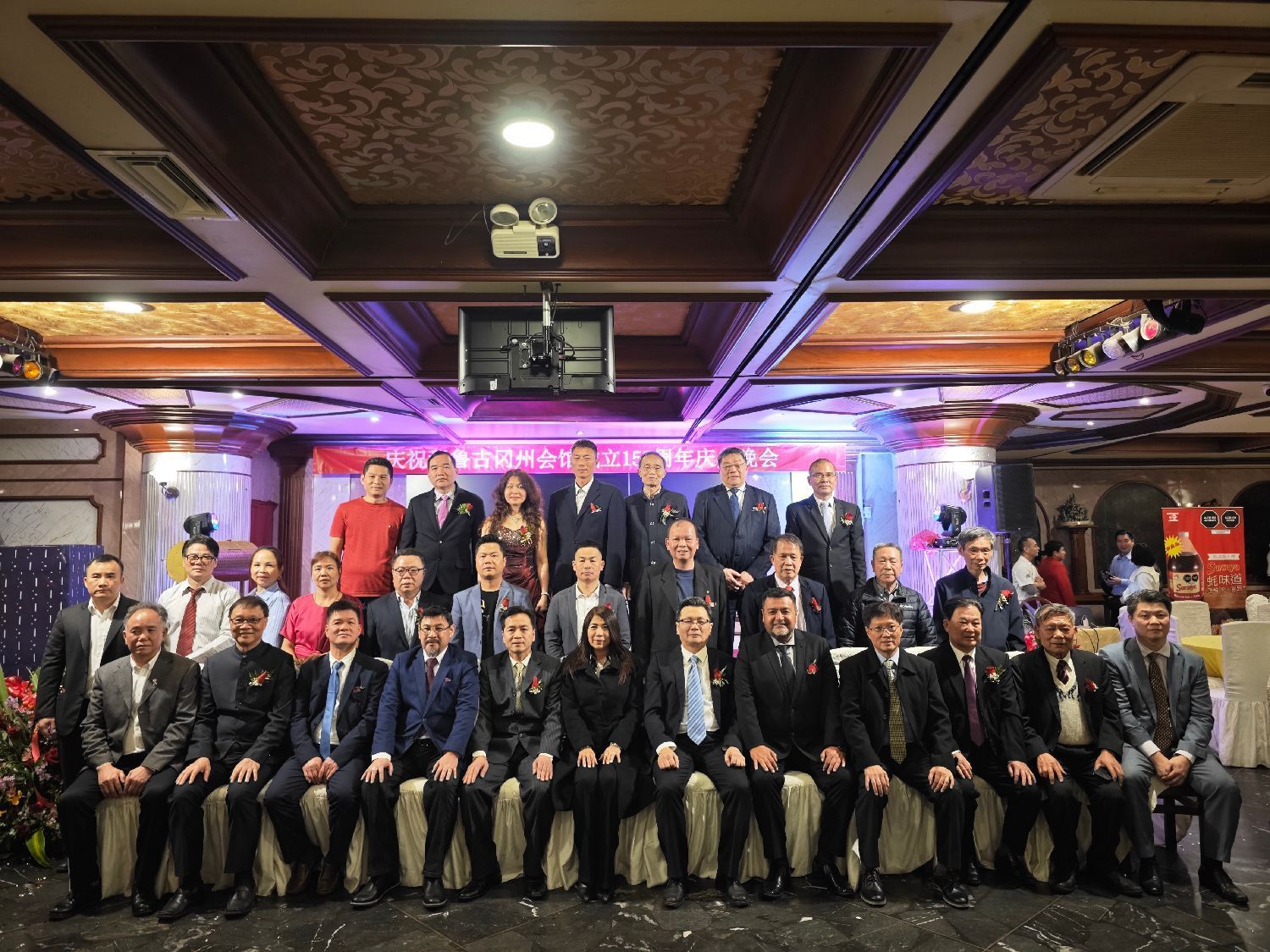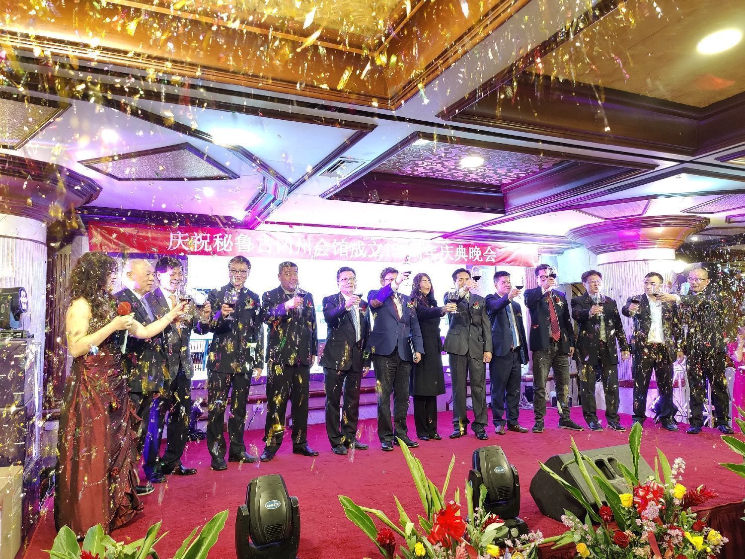 当天傍晚时分,位于San Isidro区的富临门餐厅内笑语盈盈,被鲜花与贺卡萦绕。秘鲁古冈州会馆157周年庆典联欢晚会在此举行。晚宴现场高朋满座,参加晚会的有中华人民共和国驻秘鲁大使馆公使次旺平措、王佳领事、秘鲁国会议员María del Pilar Cordero Jon Tay、国会议员Luis Gustavo Cordero Jon Tay、秘鲁利马San Borja区区长Roberto Montaya、福建同乡会会长卢晓、浙江商会会长楼兵强、川渝商会会长李冬生、里卡多·帕尔马孔子学院院长、天子教大学孔子学院院长、CCTV总台央视驻秘鲁记者侯佳琪、香港城市大学副教授及导演魏时煜,以及各大兄弟会馆、中资企业、各大商庄、各大侨社代表等重要嘉宾和侨胞乡亲们近400人。