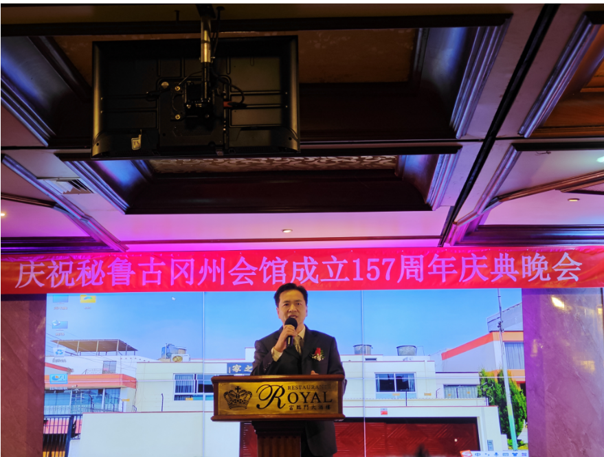 中国驻秘鲁大使馆次旺平措公使上台致辞,他表示,今日从秘鲁卡拉尔(Calar)——美洲最古老的城市考察之后,前往钱凯港,看到设备机车、无人5G操作系统陆续安装与落实,再从钱凯赶往繁华的利马大都市,抵达百年老店秘鲁古冈州会馆157周年庆典晚会,如时空交错般,体验着古老与现代、人类智慧与文明、历史与进步,正如秘鲁总统访华时习近平主席所言,中秘两国都是文明古国,友谊源远流长。无论是现代领域的合作还是旅秘侨胞的发展与秘鲁社会的融合,都呈现着两国的交心交融、互鉴互助。正值秘鲁国庆前夕,次旺次旺平措公使祝福秘鲁生日快乐,祝贺古冈州会馆成立157周年晚会圆满成功!