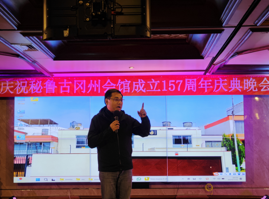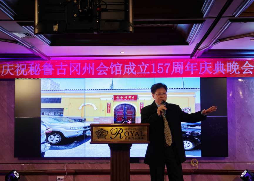 晚会由雷丽娟女士和练立基先生主持,首先全体起立,奏秘鲁共和国国歌和中华人民共和国国歌,落座之后,古冈州会馆主席李锦超上台发言,他首先强调了由在场的这两位国会议员提出的每年二月一日为中秘友谊日的重要性和非凡意义,向大家的努力表示感谢。其次,李锦超主席向大家介绍了现任理监事会成员近年来所做的工作和取得的成果,感谢所有人的付出。他表示将继往开来,团结广大侨邑,在大使馆和通惠总局的领导下,团结互助、爱国爱乡,祝大家幸福安康!