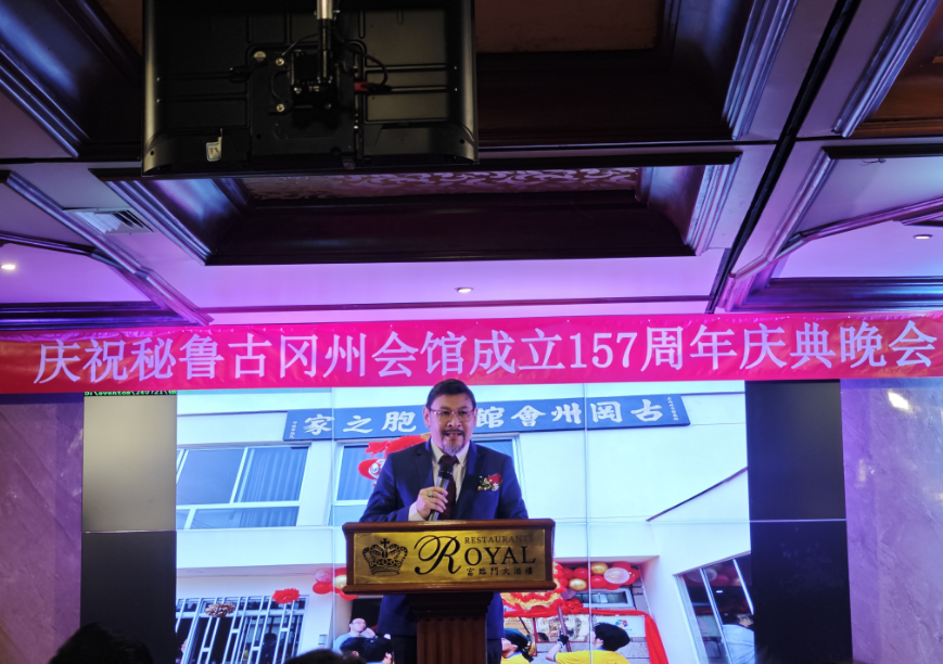 古冈州会馆主席邓振棠发表讲话,首先他代表古冈州会馆全体理监事向莅临参加古冈州会馆成立157周年暨关圣帝宝庆典活动的亲乡表示感谢,并向前辈及乡亲致以最崇高的敬意。然后汇报了自2022年9月12日现届理监事的工作情况:在全体理监事共同努力之下,在2022年10月28日在San Borja区成功购买了一幢物业,经过改建为秘鲁首家“侨胞之家”,在2023年2月26日成功举行了的落成揭幕仪式。“侨胞之家”一直良好运行,全面为乡亲们提供服务;次年2023年秘鲁北部洪灾之际,古冈州会馆呼吁大家捐钱捐物,与秘鲁人民共同抗灾,获得了秘鲁政府的一致好评;成功与里卡多·帕尔玛大学孔子学院在“侨胞之家”开设国学班,培养新一代传承中国文化的努力也取得了阶段性成果;每月首个星期日举办的“长者之约”让在秘前辈们感受到温暖与关爱,践行弘扬中华民族尊老爱幼的传统美德。邓振棠主席指出,将继续发扬会馆宗旨、继承先侨遗志,为侨民服务,祝愿会馆会务兴隆,全体侨胞幸福安康。