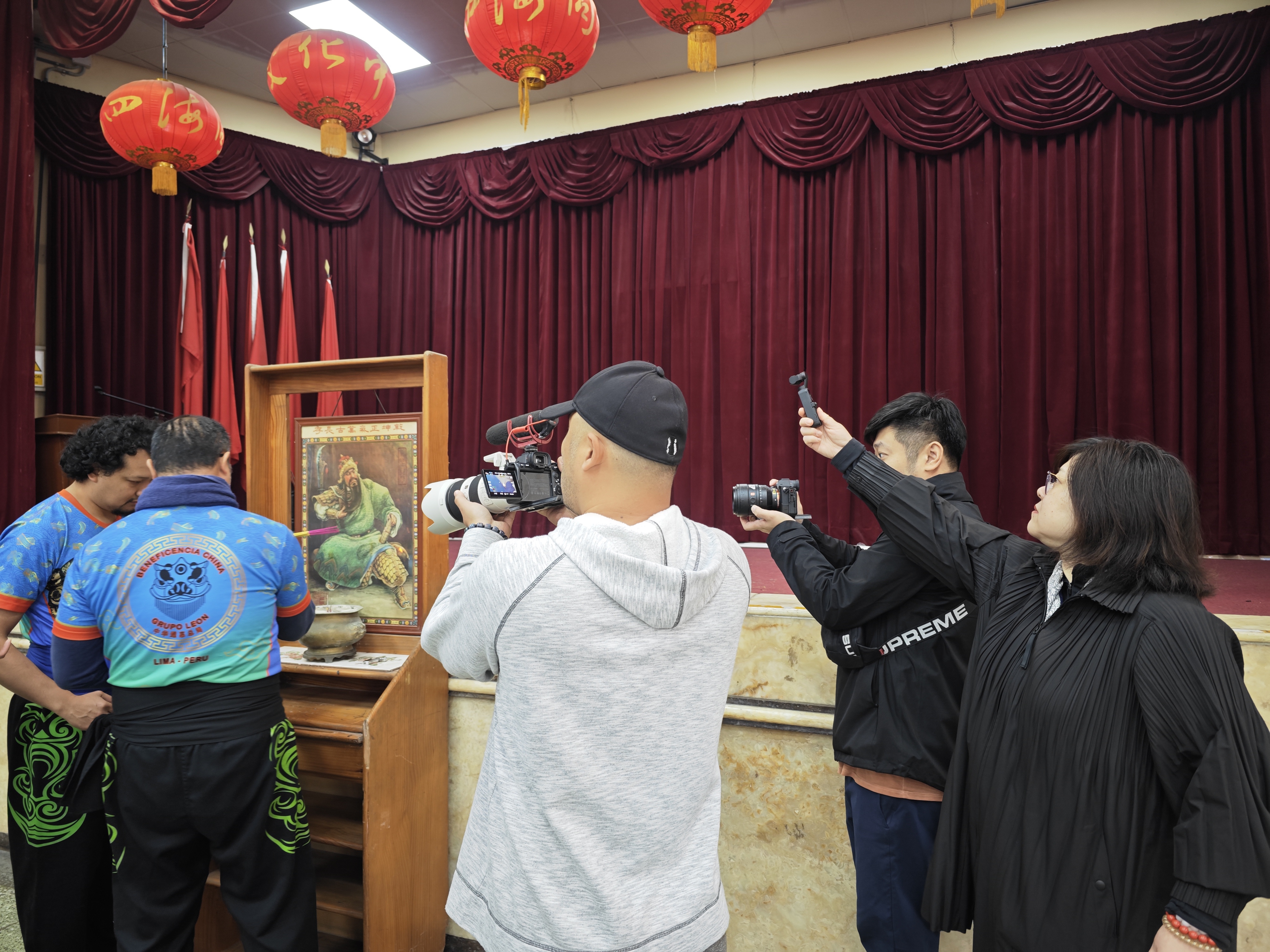 与此同时,摄制组对通惠总局醒狮团进行拍摄,狮团从传统的拜关公仪开始,焚香缭绕,团员一起三拜后,按顺序先后上香,严肃庄重。