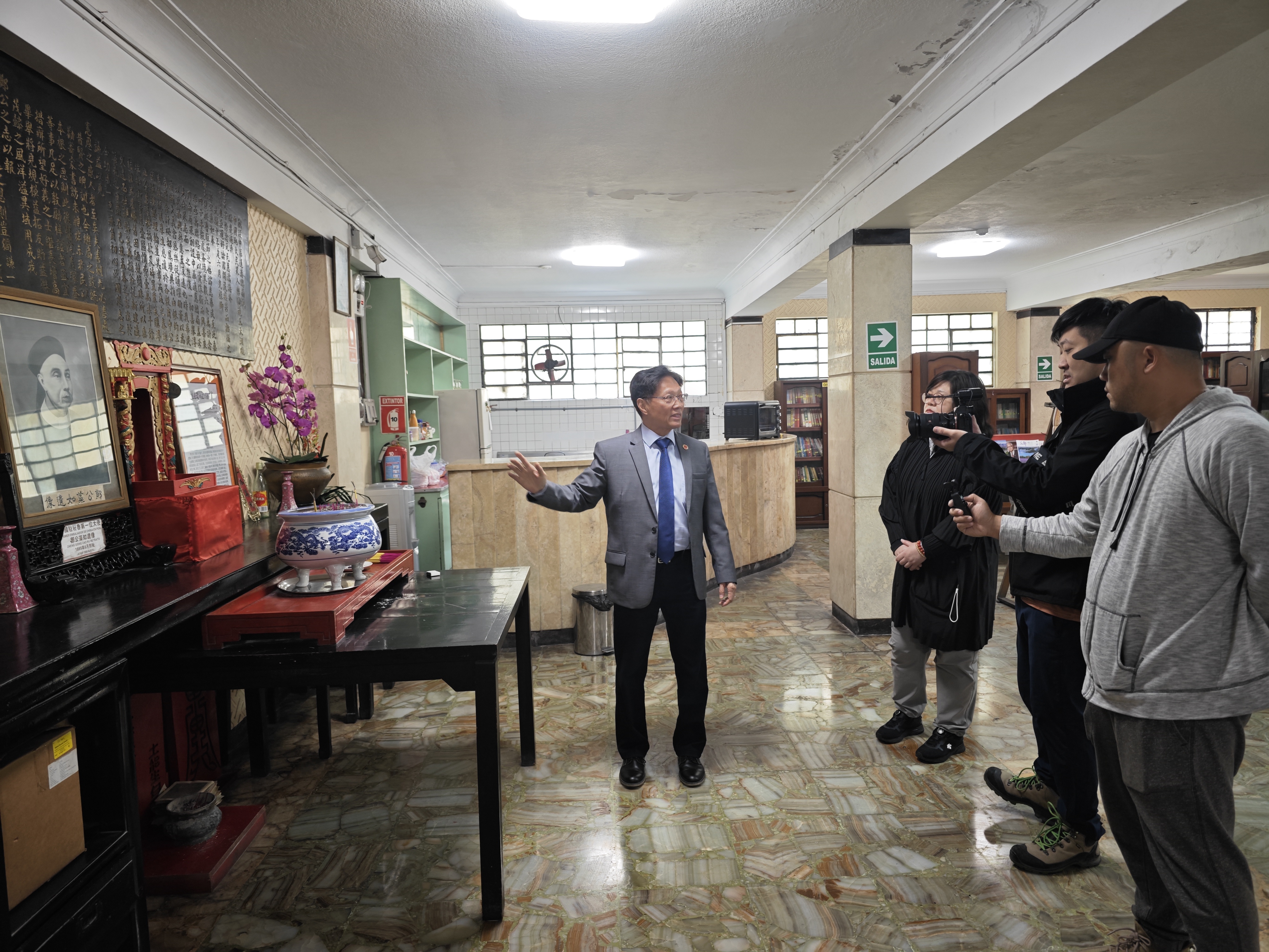 这次CGTN节目组前往秘鲁拍摄纪录片,是通过中国驻秘鲁大使馆联系到通惠总局理监事兼《秘华商报》社长邓振棠,作为爱国侨领和媒体从业者,他始终致力于促进中秘之间的友好关系,支持祖国的建设,推进双边文化交流。经过多次现场踩点、时间安排规划、与相关方沟通交流,通过详尽的介绍与双方多次沟通,最终确定了拍摄方案。