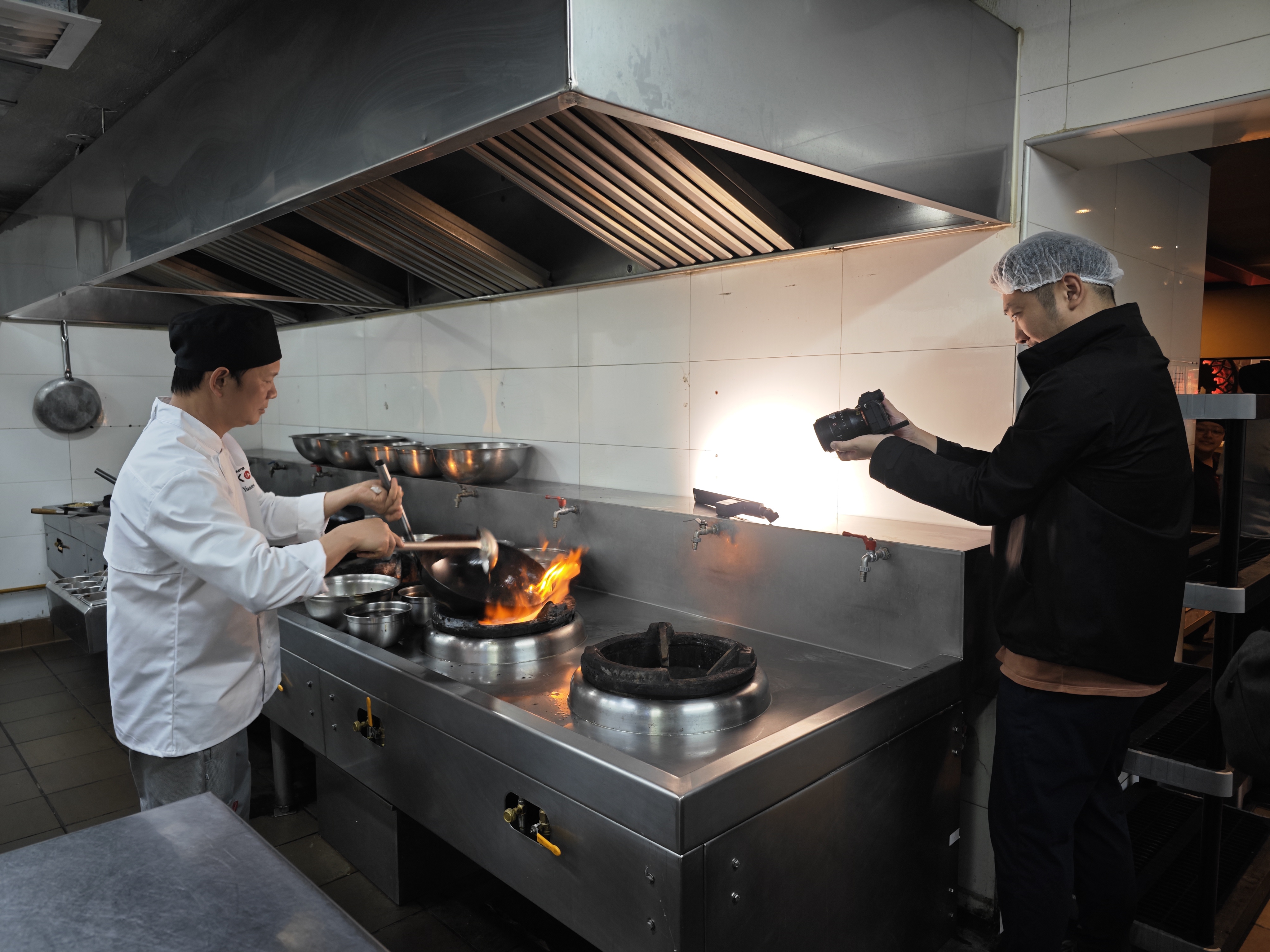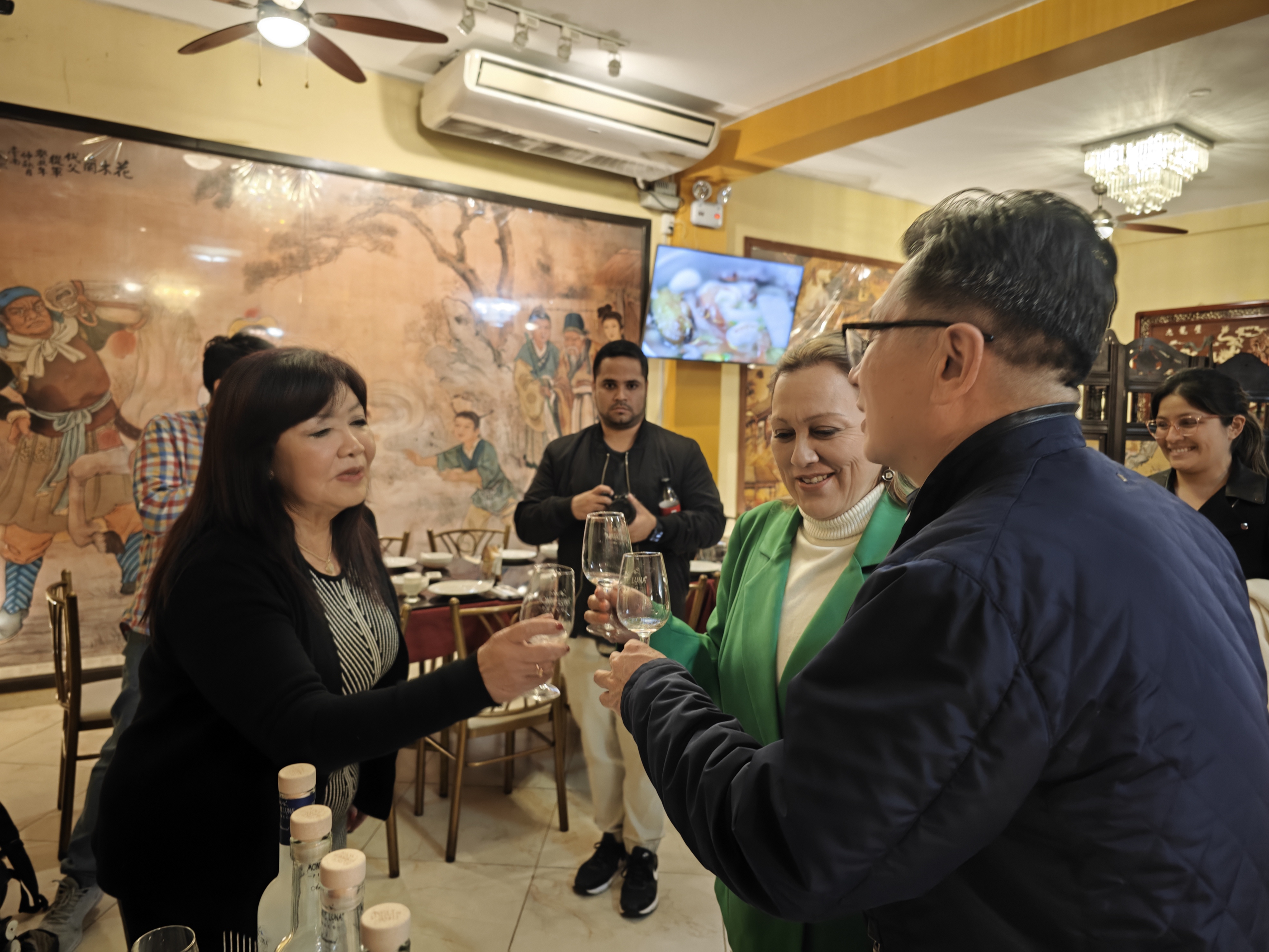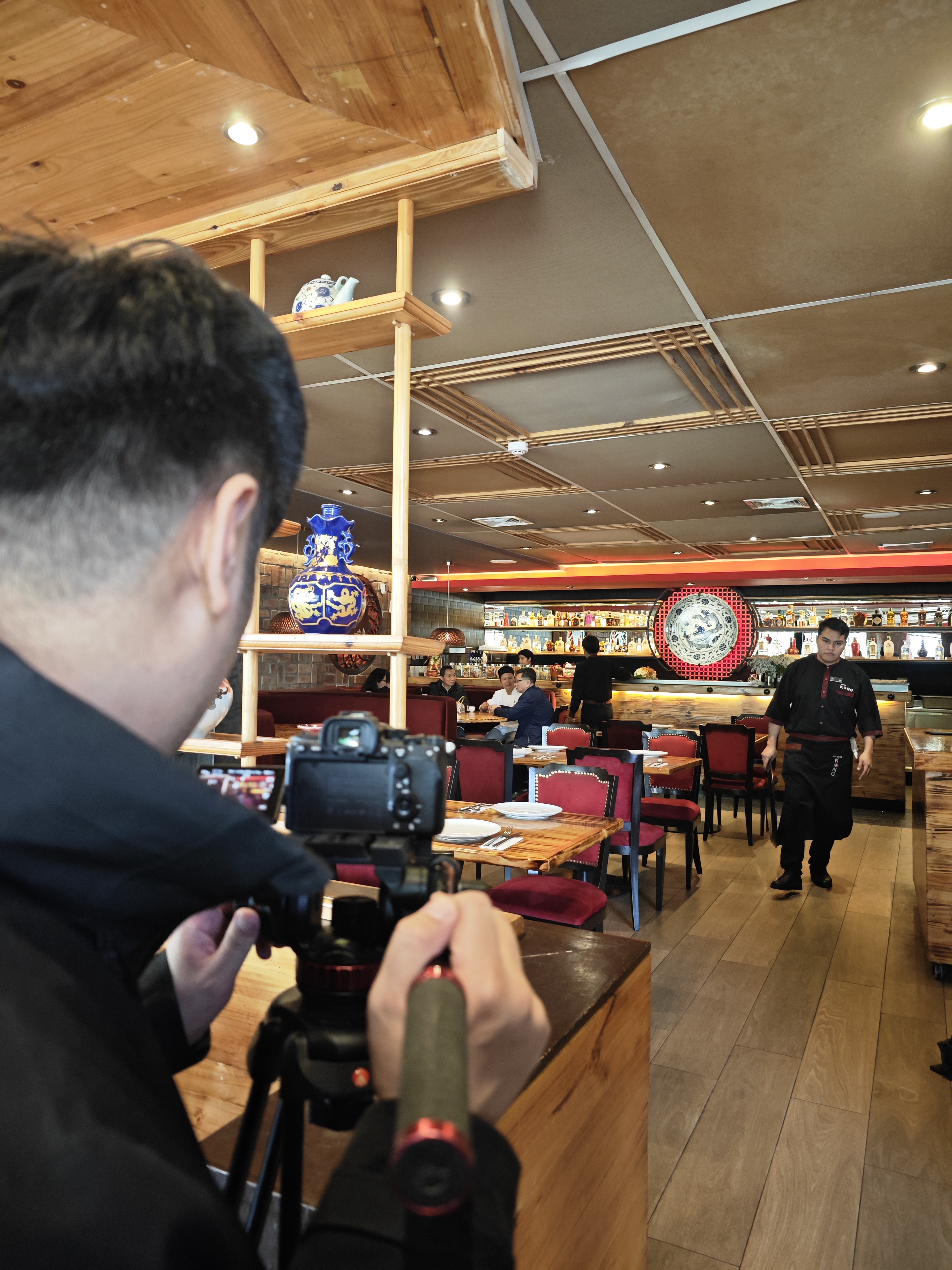 随后,摄制组移师到San Borja区的Primavera街的Master Kong(江)中餐馆进行拍摄。Master Kong红色院墙与黄木拱形大门在街景中格外引人注目。拍摄组按照如期约定,步入新开张不久这一餐馆,店内装修精美,大厅食客满座,中式木门、屏风、窗棂、博古架、瓷器与书画,无不体现着新中式风格。在CGTN的摄影师的镜头下,整个空间的中式元素散发古雅而清新的魅力。提到秘鲁中餐不得不说Chifa中的经典菜肴Chaufa(炒饭),邓振棠社长和摄制组成员戴上厨房专用帽子来到后厨,与摄影师一起调整角度和灯光,拍出了中餐烹饪过程中极具特色的大火爆炒画面,从升腾的火苗、锅铲与炒锅的碰撞声中,就仿佛已经闻到中式烹饪中一种独特的风味的锅气。