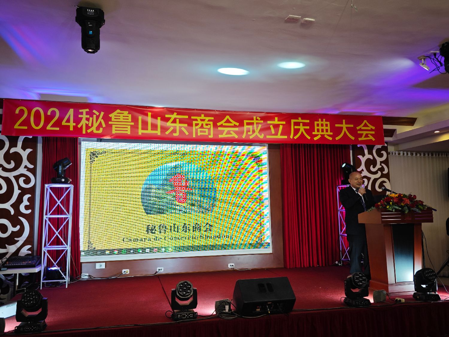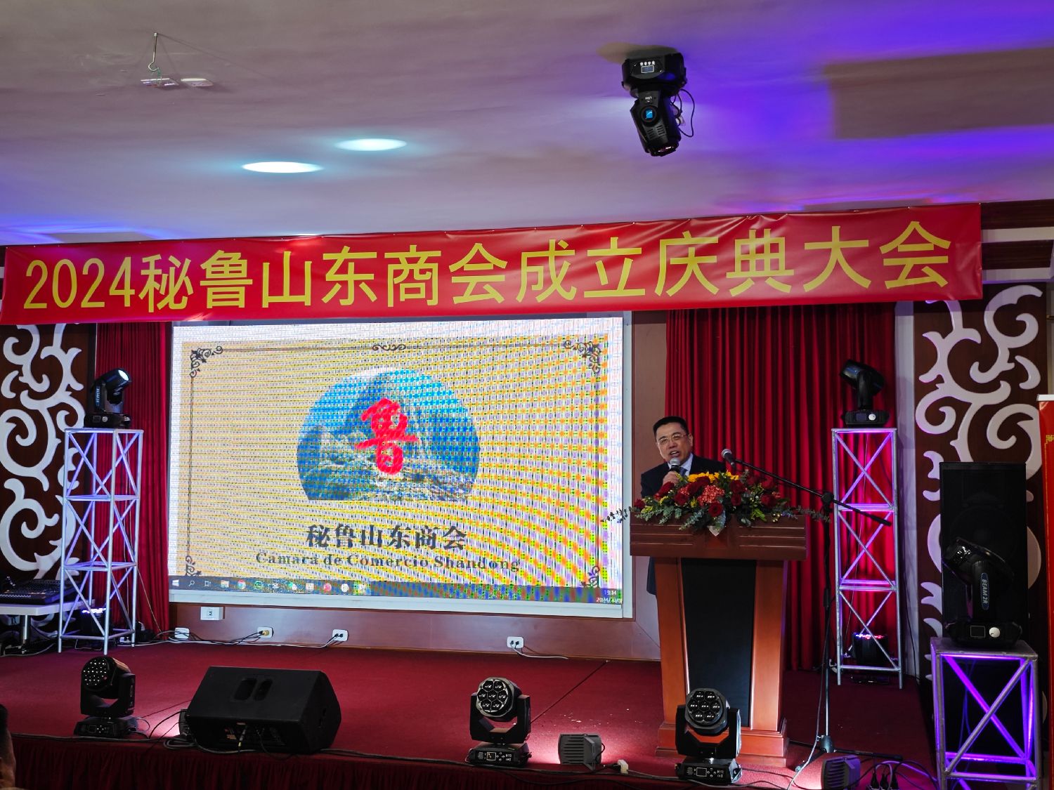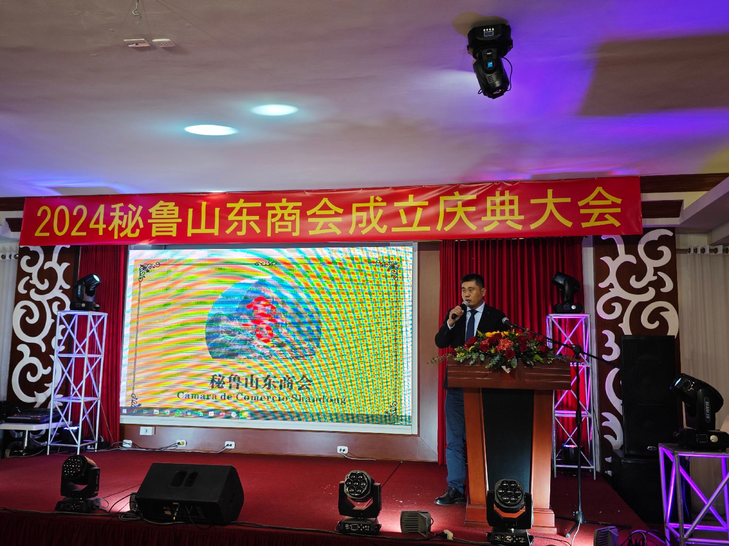 山东商会执行会长陈宪民致辞表示,非常荣幸在这意义非凡的时刻与大家共聚一堂,共同庆祝山东商会的隆重成立。山东源远流长的儒家文化承载着山东人民的深厚感情,培育出山东人热情豪爽、勤劳智慧的诚信品质,如明灯一般指引着鲁商在这片印加文明土地上前行,相信秘鲁这个多元文化的国家将予以鲁商新的平台与机遇,开拓出更广阔的前景。山东商会的成立标志着迈入了一个团结奋进的新台阶,好客山东人以豪爽之心广结天下好友,以勤劳之手开创事业新篇章。愿大家携手并肩,构筑沟通的桥梁,助力企业蓬勃发展,推动山东与秘鲁多维度合作,为实现共赢而不懈努力奋斗。