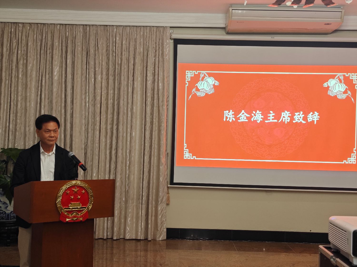陈金海主席感谢大使馆牵头组织迎接习近平主席访秘及参与亚太经合组织相关工作。侨胞们踊跃参与接待任务,展现了侨社的凝聚力和支持。