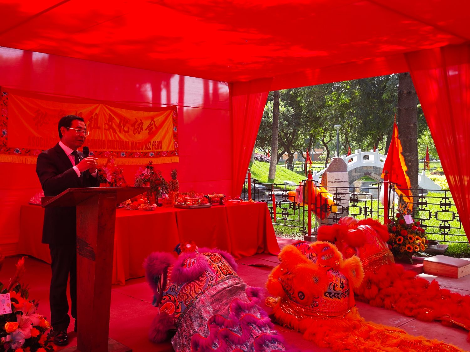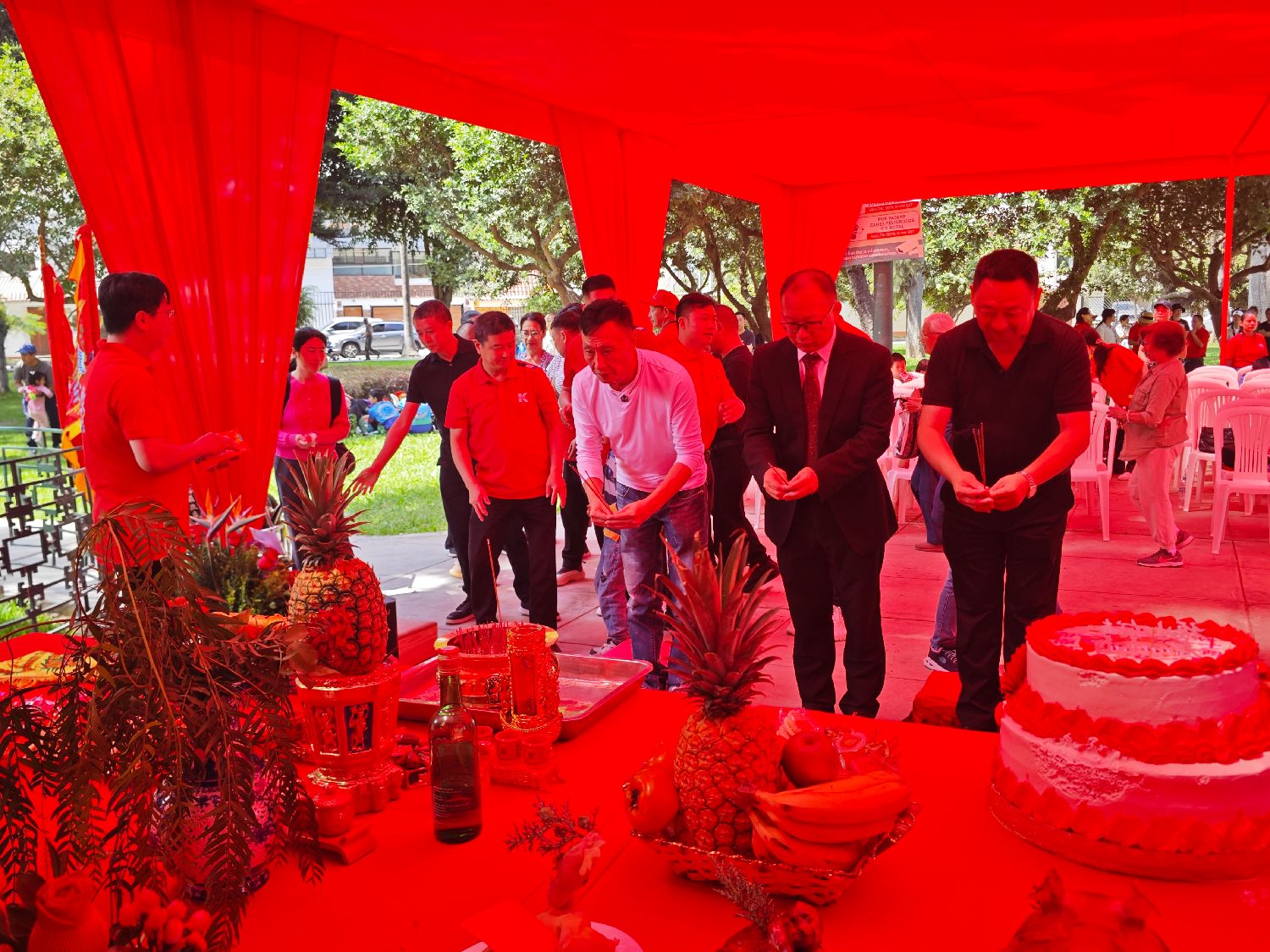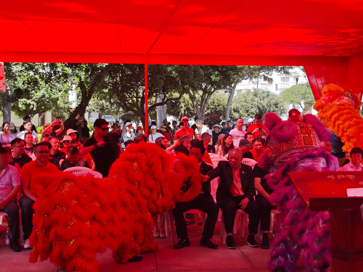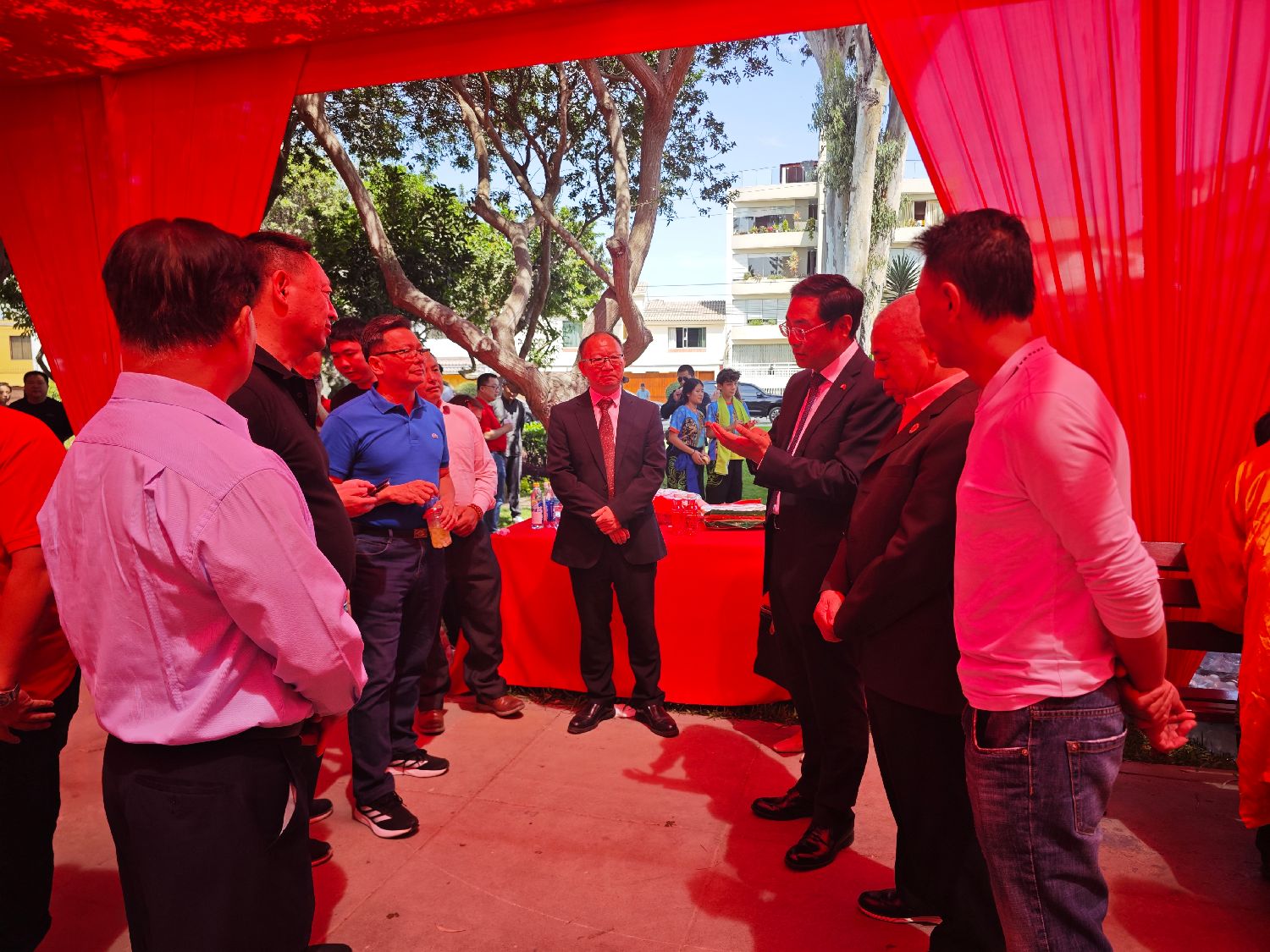 中国驻秘鲁大使馆次旺平措公使、王婧怡领事,秘鲁中华通惠总局主席沈达坚、监事长陈伟业、总协调冯锡荣、理事兼《秘华商报》社长邓振棠、福建同乡会会长杨志华、卢晓、林峰,川渝商会会长李冬生、秘鲁台湾商会会长陈世堂等众多侨团代表和当地民众200余人参加。