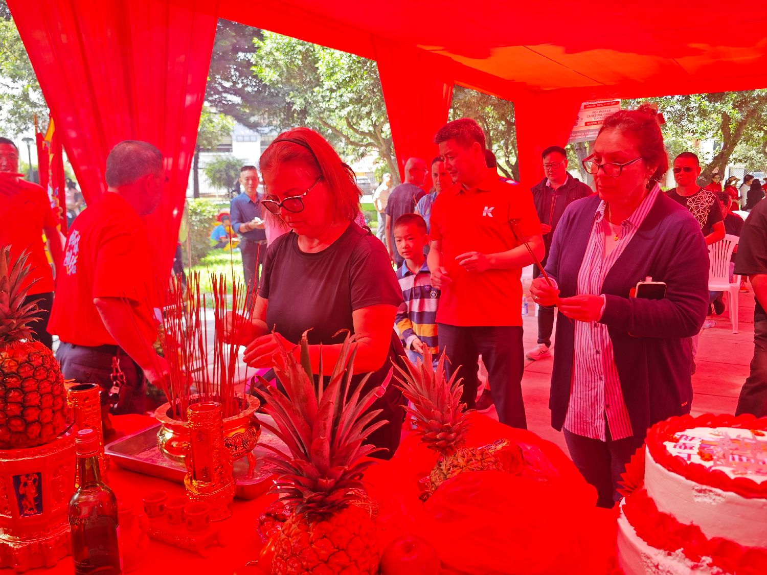 公使次旺平措与侨团代表共同切分妈祖诞辰蛋糕,寓意风调雨顺、百姓安康,现场掌声雷动、祝福连连。随后,公使与到场的侨领代表们展开亲切交谈,充分体现了祖国对海外华人的关心和牵挂。