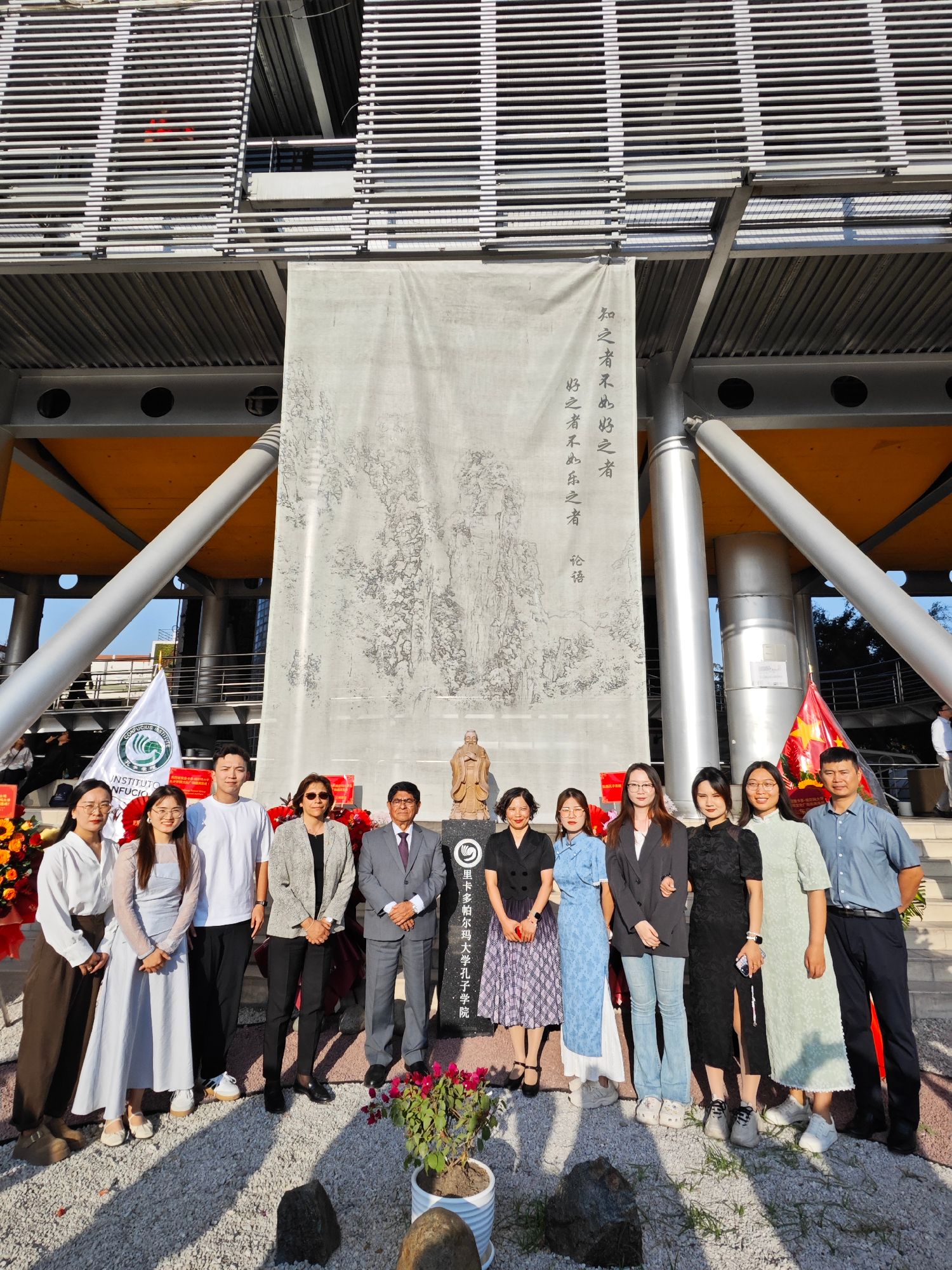 中方院长孙燕代表全体孔院师生,向出席活动的中资企业代表、侨团负责人和支持中文教育与文化交流的朋友们表示热烈欢迎和衷心感谢。她在致辞中深情地说:“今天我们怀着无比喜悦的心情,共同见证孔子学院文化广场暨孔子雕像的落成。孔子‘仁者爱人’、‘有教无类’的理念,跨越千年,依然闪耀着智慧之光。这座雕像,不仅是一座文化的丰碑,更是中秘文明对话的桥梁,承载着我们‘以文化人、以文促情’的初心与信念。”