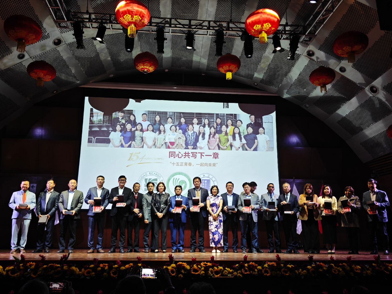《秘华商报》讯:2025年11月8日晚,里卡多·帕尔玛大学孔子学院在该校文化中心Cori Wasi隆重举行建院十五周年庆典暨文艺晚会。中华人民共和国驻秘鲁大使馆参赞赵晓鸣、官员张倩倩,里卡多·帕尔玛大学校长Segundo Félix Romero Revilla博士,秘鲁中华通惠总局主席罗杰文,以及来自秘鲁各大中资企业、侨社侨团、教育界的嘉宾、孔院师生代表、媒体代表等中秘友好人士近300人齐聚一堂,共同见证这一具有纪念意义的盛会。
