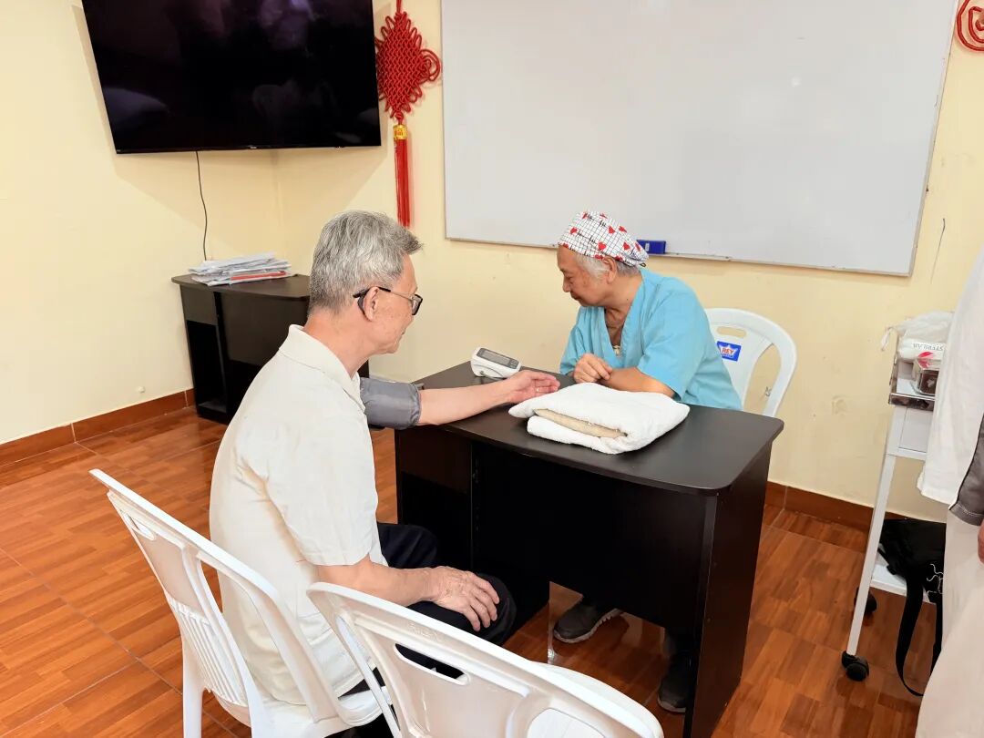 文娱节目结束后,古冈州会馆还特别安排了中医义诊环节,将节日的关怀延伸到侨胞的身心健康。义诊医师毕业于广州中山医学院医学全科,精通中西医结合诊疗及针灸理疗,曾在广州第一人民医院工作,旅居秘鲁多年行医,凭借精湛医术和良好口碑,曾受中国驻秘鲁大使馆邀请进入总统府,为总统家属及政府官员提供诊疗服务。