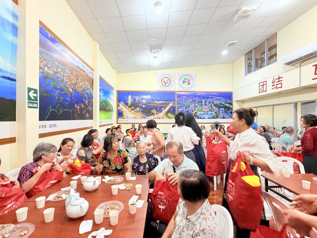 活动现场,领事向长者乡亲派发新年礼物,赠送“敬老福袋”,在古冈州会馆理监事的协助下有序进行,祝愿大家福寿安康、马年吉祥,传递出对长者的关怀与祝福,寓意尊老敬老、情暖侨心的中华优良传统。长者们手捧礼物,脸上洋溢着欣慰而温暖的笑容,现场充满了感恩与喜悦交织的浓浓乡情,营造了侨社同心同德、守望相助的温馨氛围。