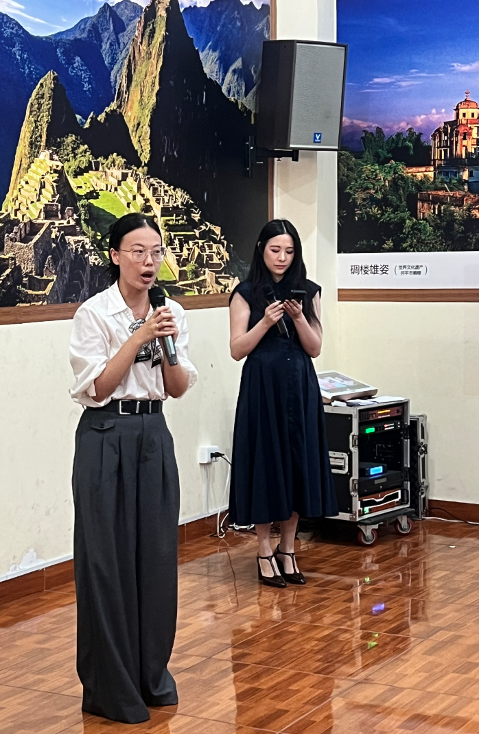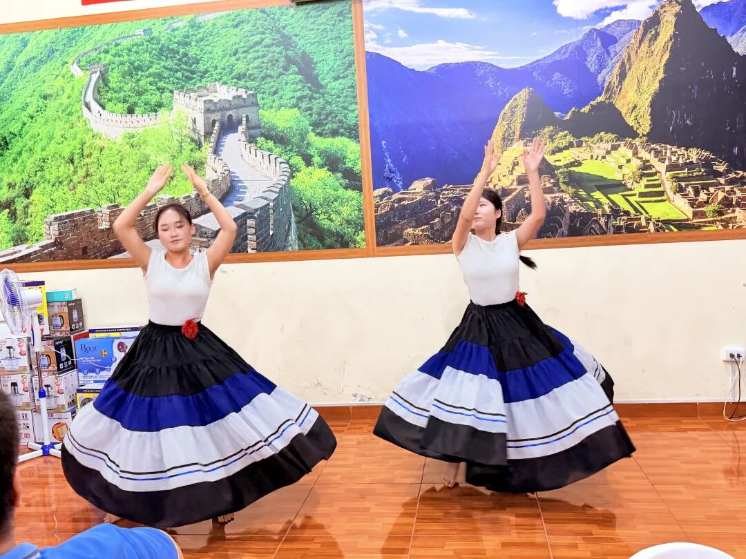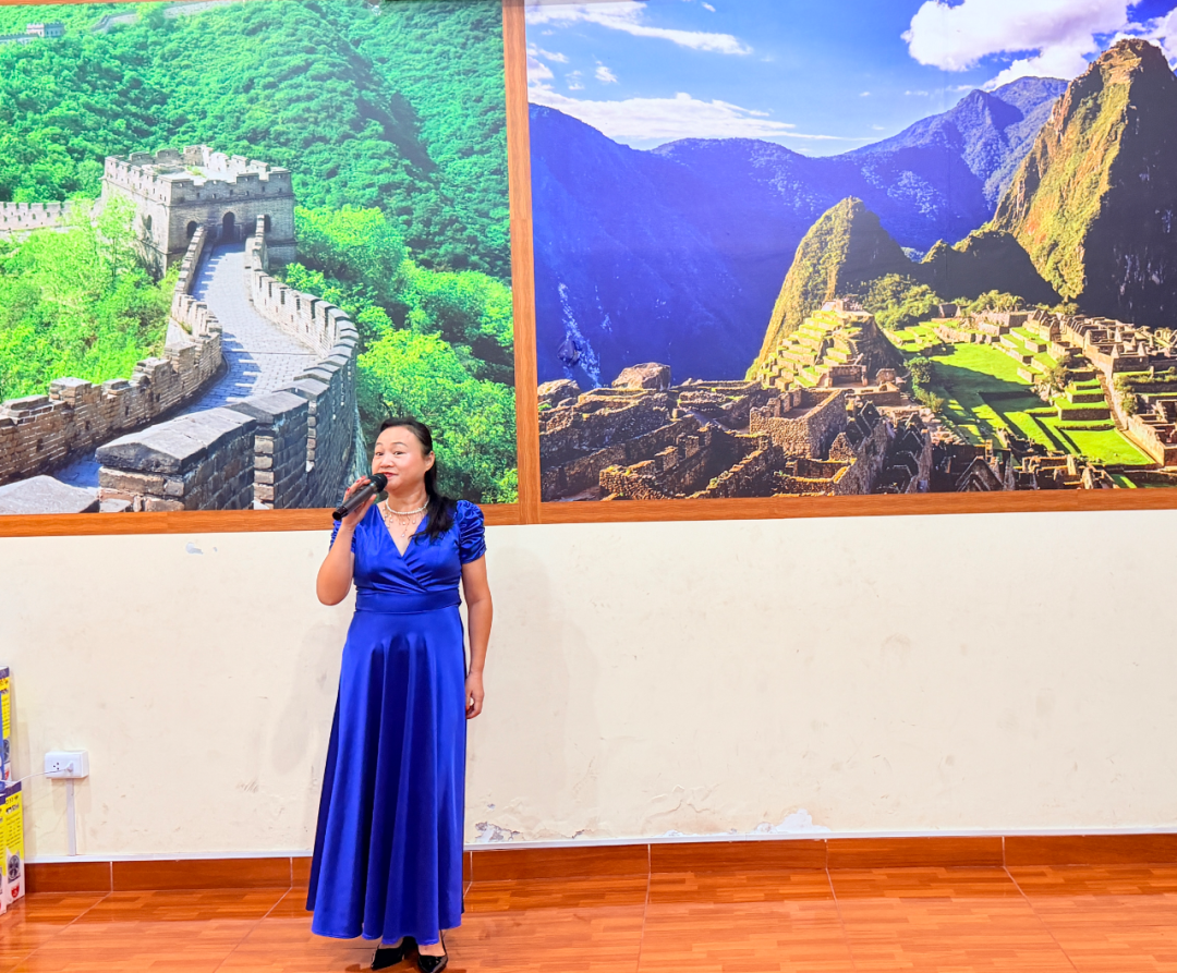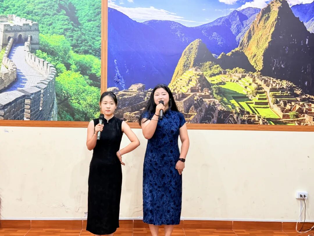 随后,里卡多·帕尔玛大学孔子学院王冉、胡欣冉两位老师深情演唱歌曲《桃花笑》,旋律轻快、情感真挚,为活动增添了浓浓的节日气息。鹤山的秘鲁儿媳妇丽娜用流利的汉语演唱《你永远不懂我》,赢得了在场长者和来宾的阵阵喝彩。