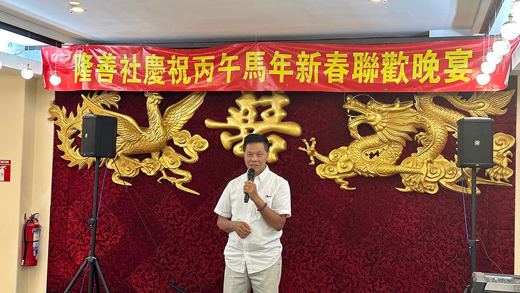 秘鲁中华通惠总局、隆镇隆善社主席陈金海首先致辞,向全体乡亲致以马年新春的美好祝福。他回顾了隆镇隆善社百余年的发展历程与爱国爱乡的光荣传统,深情缅怀社团在抗战时期与侨胞同心支援祖国的历史功绩。同时,他高度赞扬社员刘金良先生乐善好施、热心公益,长期捐助通惠总局、中山会馆及隆镇隆善社等多个侨团的善举,并向出席晚宴的刘金良先生后人致以崇高敬意与衷心感谢。