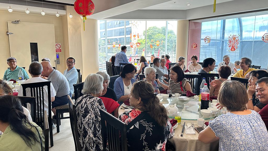 午宴正式开始,酒家服务员有序穿梭,为各桌乡亲奉上丰盛佳肴与饮品,每一道菜品都兼具家乡风味。乡亲们围坐一桌,一边细品美味、畅饮畅谈,一边追忆岁月往事、共话家乡变迁,在叙旧情、话新篇中,让乡情在欢声笑语中愈发浓厚,现场氛围温馨炙热、其乐融融,暖意浸润着每一位长者的心房。