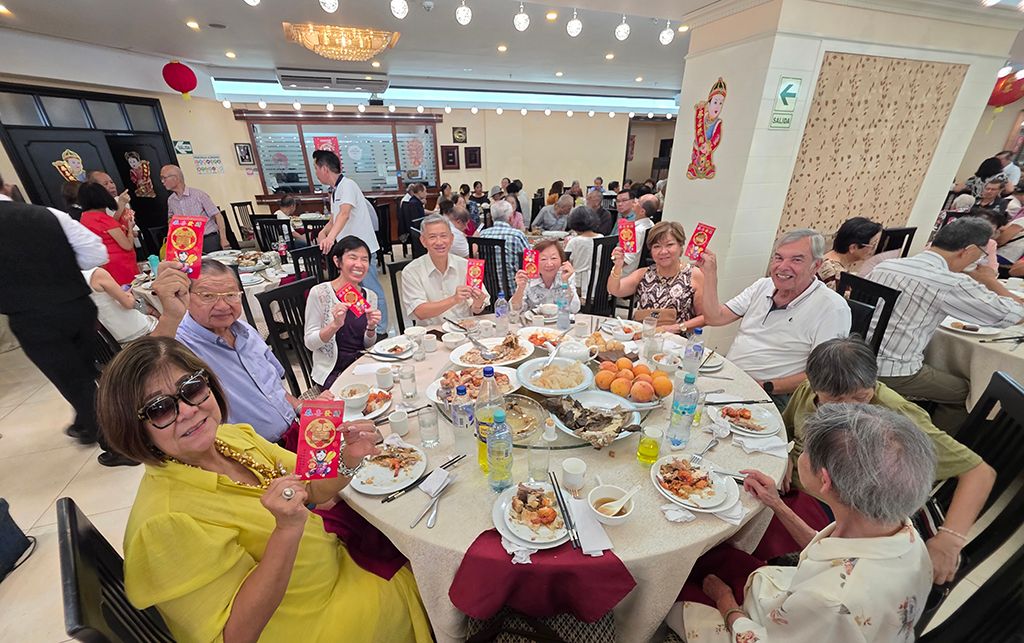 本次新春敬老联欢会由会馆理事余丽嫦与万蔼文携手主持,流程井然有序、处处充盈着温情暖意。联欢会伊始,秘鲁中山会馆主席陈伟业致新春贺辞。随后,会馆理监事成员登台与大家共同举杯,恭祝新年吉祥、阖家安康。
