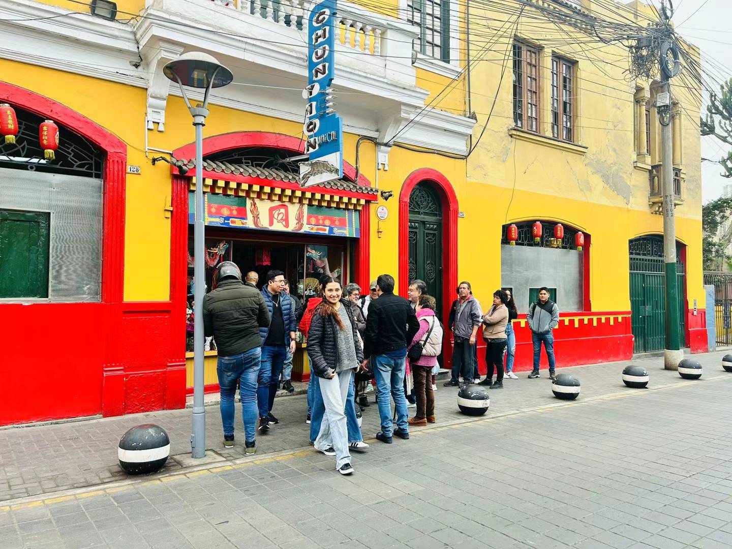 明黄色外墙开着大红色拱门,配着正上方的中式门头,墙壁挂上Chifa Chun Yion的字样,格外引人注目。