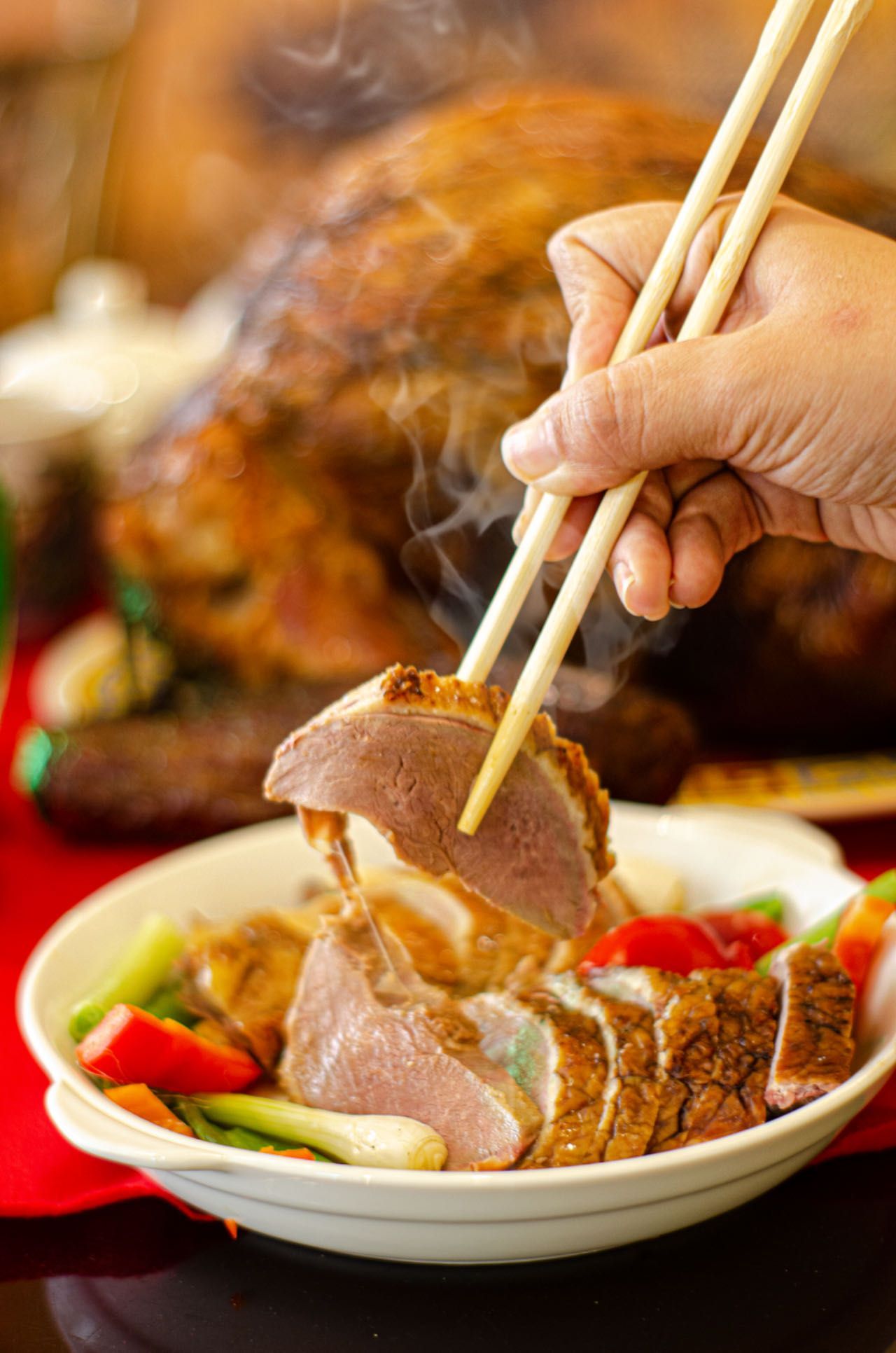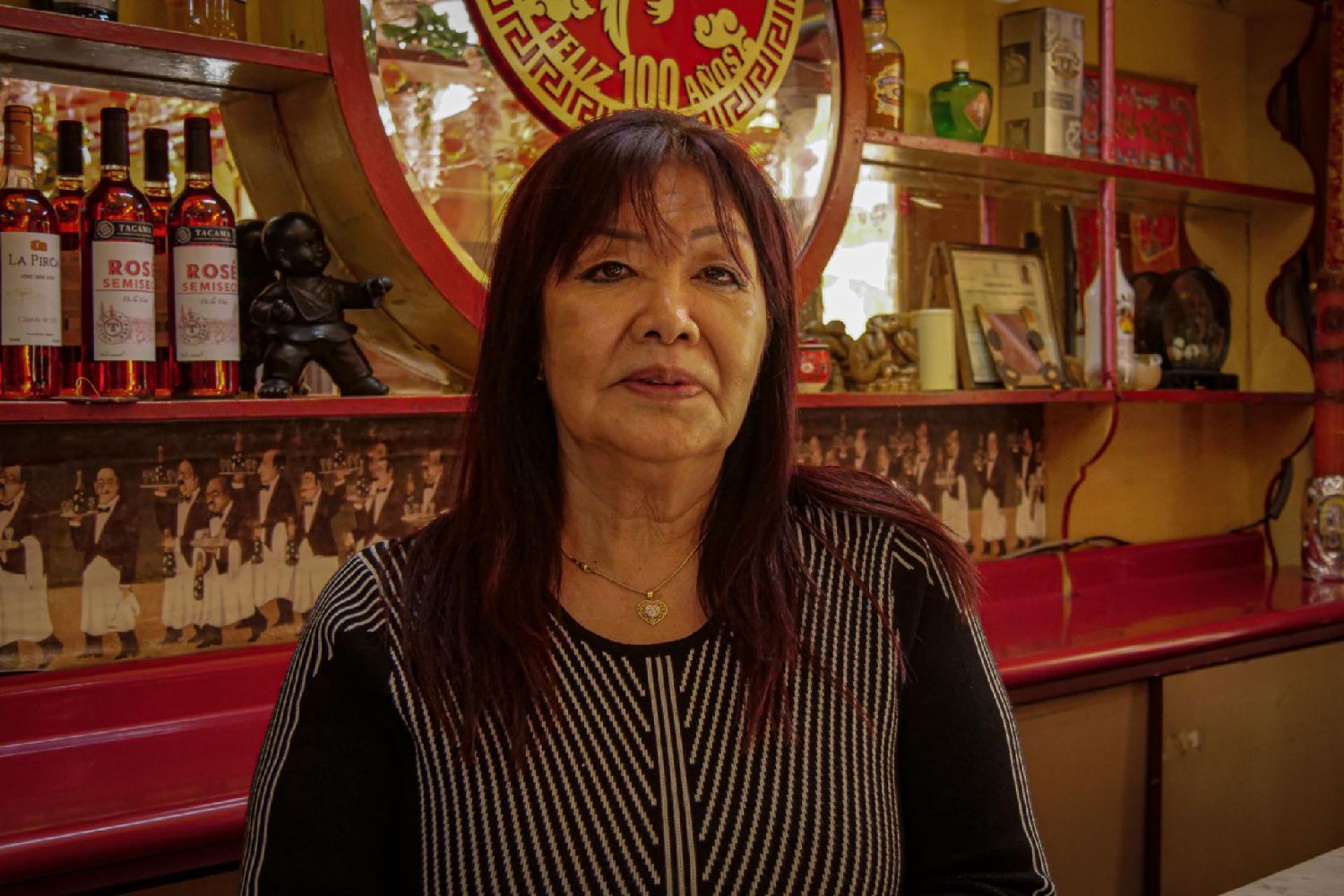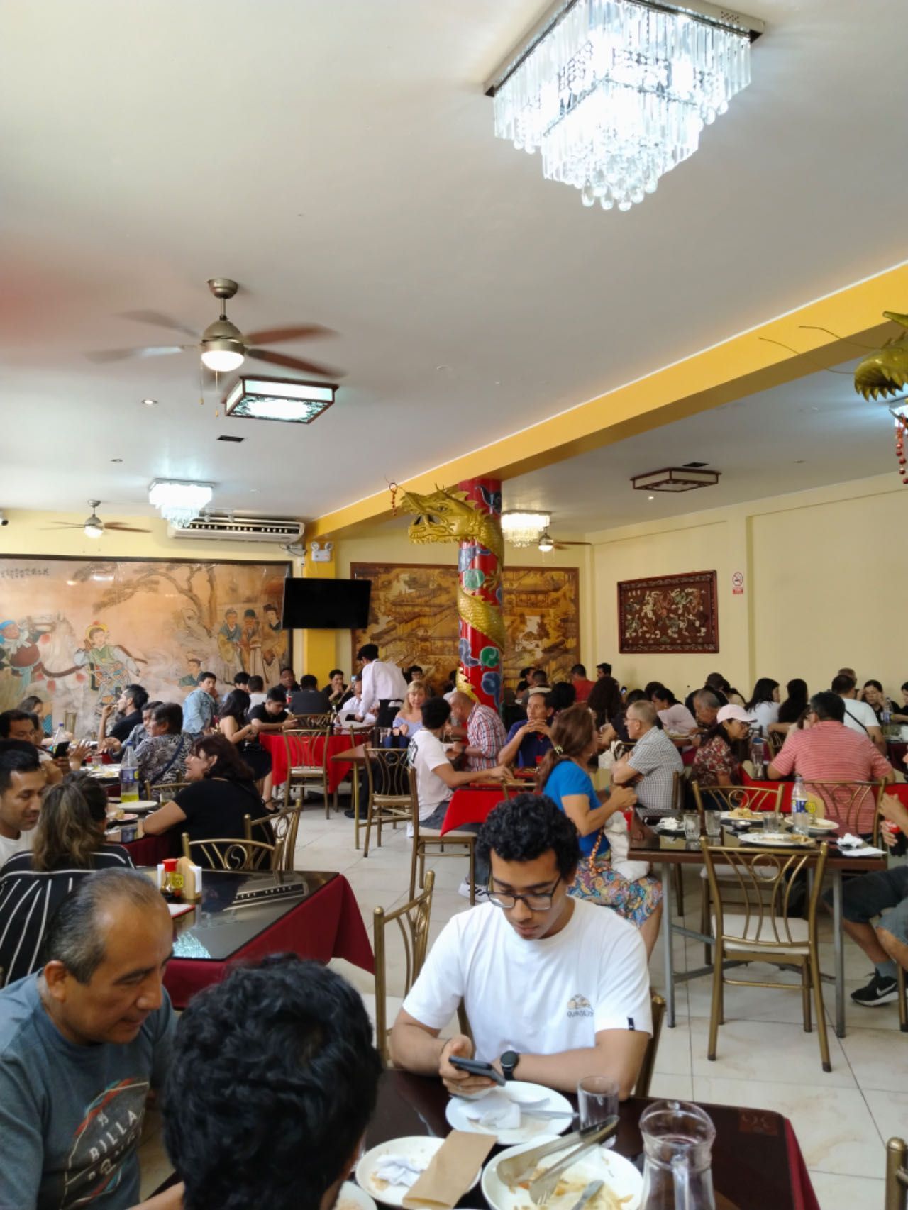 当天,餐厅老板Ana Tong Luna热情接待了《秘华商报》的来访。她介绍了餐厅的布局和发展历史以及宗旨。在大堂一侧,引人注目的是挂着红色门帘的木板包间,隔板是米色木头,上边是磨砂玻璃,包间空间不大,拉上红色门帘就为食客提供了一个私密空间。穿过大厅,来到走廊,她骄傲地介绍着照片墙上的故事,每一张照片都是值得纪念的历史性时刻。大堂保留着中式房梁和房柱,金龙旋绕在红色柱子上,顶头的壁画是一幅《木兰替父从军图》和一幅古代市井建筑生活图,门口还有店主每年新换的春联,无不彰显着对中国传统文化的传承与尊重。