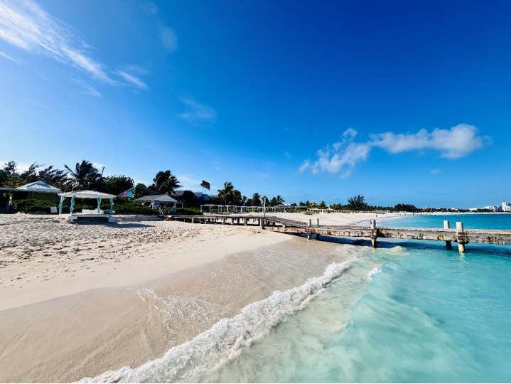 Grace Bay是这里最知名的海滩,曾被评为“世界最美沙滩”之一。不同于我去过的任何一个海滩,这里的沙子绵延12公里,细到几乎可以在指缝间流动。阳光直射下也不会烫脚,是那种细腻又纯净的白。在这里第一次看清海蓝与天蓝的界限。前者带着翡翠的润,后者掺了银粉的亮。当膝盖没入温暖的细沙,浪花在眼前碎成“细钻”的霎那,“美”是如此简单。整个海滩不吵也不热闹,就像大自然私藏的秘境。