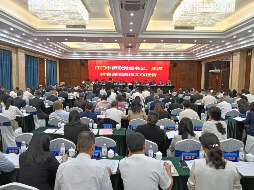 江门市侨联党组书记、主席林春晖在会议上做工作报告。报告指出,江门市各级侨联组织近年来围绕中心,服务大局,充分发挥桥梁纽带作用,广泛团结凝聚广大归侨侨眷和海外侨胞,积极履行服务经济发展、依法维护侨益、拓展海外联谊、积极参政议政、弘扬中华文化、参与社会建设等六项基本职能,江门市侨联事业取得新进展、实现新突破,取得可喜成绩。
