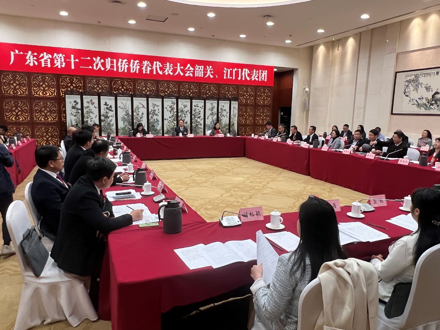 图为广东省侨联主席李丰参加韶关、江门代表团分组讨论