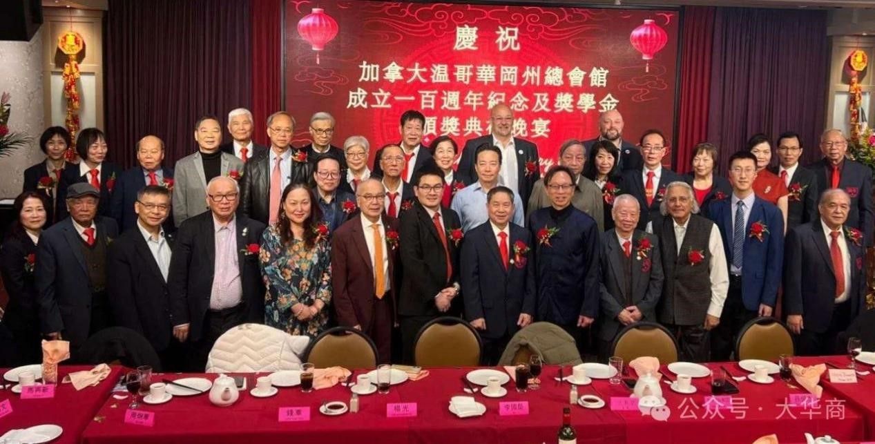 图为温哥华冈州总会馆百年庆典嘉宾合影