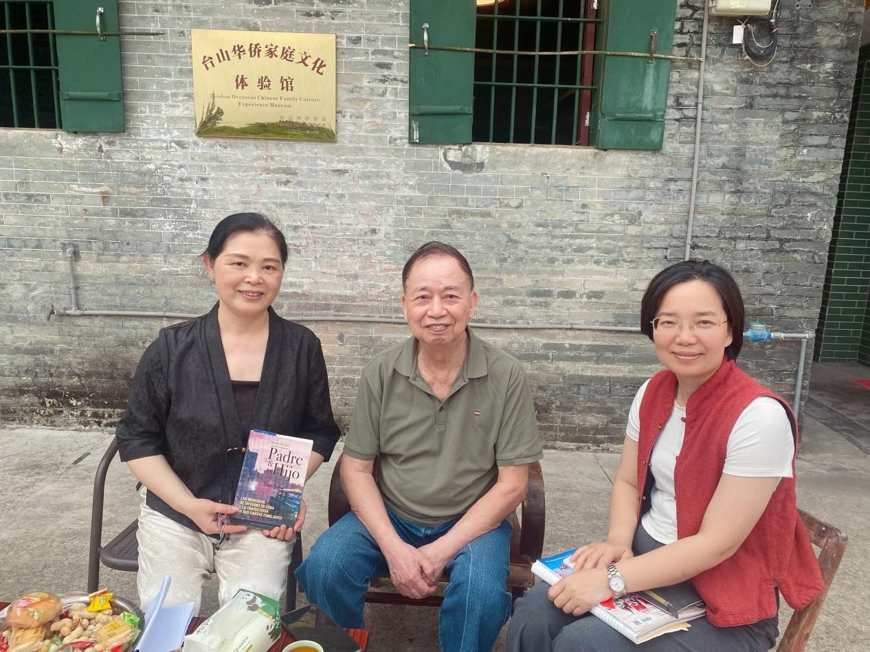 (江门市侨媒中心讯)今年4月12日,著名古巴华侨史研究专家、江门市华侨历史学会名誉会长、暨南大学文学院教授黄卓才及其夫人侯素梅女士回到家乡广东台山四九镇永隆村访问,期间向江门市图书馆地方文献部赠送其长篇纪实文学作品《鸿雁飞越加勒比--古巴华侨家书纪事》西班牙语译本。闻讯赶来的台山市委常委、统战部长李白云女士以及江门市华侨历史学会一众学者专程登门拜访,黄卓才教授亲自担任导游,为家乡侨史学者详细讲解祖居“宝世楼”的前生今生。这百年小洋楼原来还深藏着一段荡气回肠的感人故事!