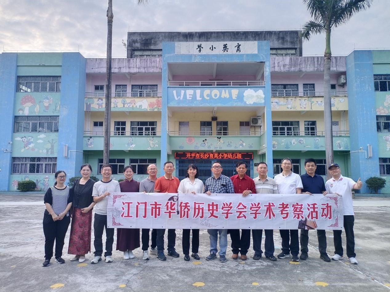 图为雷灿仪先生(右5)参加江门市华侨历史学会学术考察活动