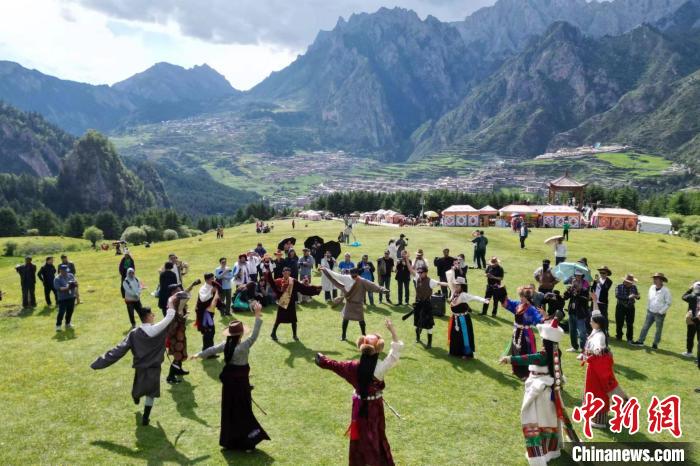 6月24日,海外华媒甘肃行来到迭部县扎尕那,拍摄当地民族服饰和表演。九美旦增摄