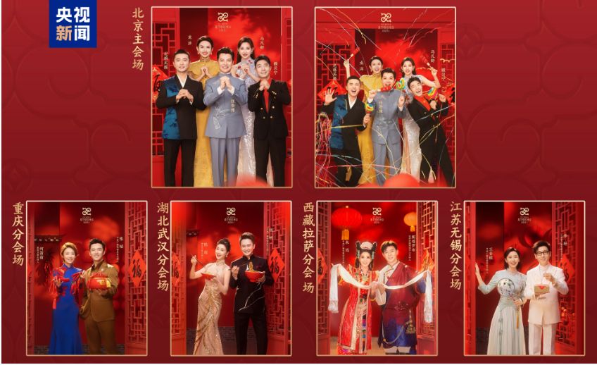 任鲁豫、撒贝宁、尼格买提、龙洋、马凡舒共同担任总台2025年春晚北京主会场主持人;重庆分会场由总台主持人张韬和重庆卫视主持人何苗苗主持;湖北武汉分会场由总台主持人杨帆与湖北卫视主持人陈超主持;西藏拉萨分会场由总台主持人朱迅和拉萨市融媒体中心主持人斯塔罗布主持;江苏无锡分会场由总台主持人王音棋与江苏省广播电视总台主持人李好主持。主会场和分会场将携手传递美好团圆、举国同庆的新春氛围。