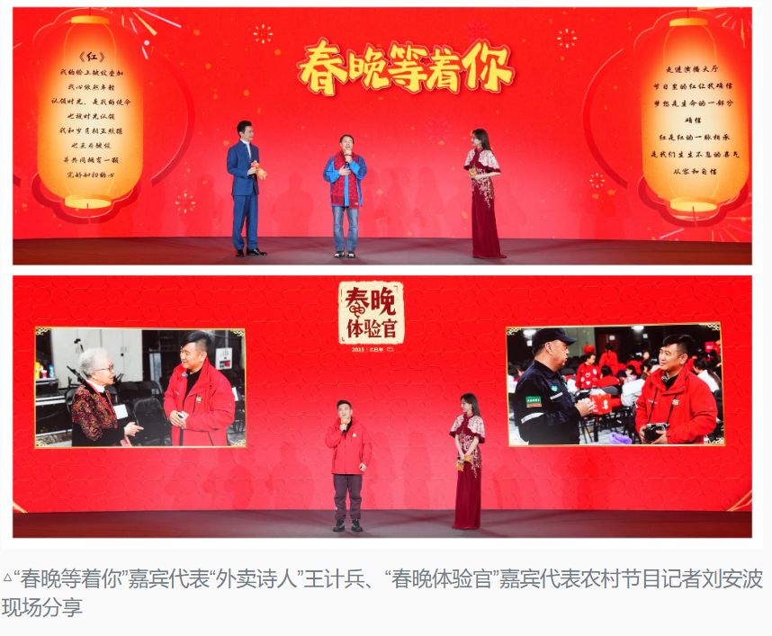 全民共创,你我都是主角。今年春晚,来自各行各业的新时代奋斗者走到聚光灯下,唱响对生活的热望和对美好的追求。“春晚等着你”“春晚体验官”等项目,邀请更多可敬可爱的普通人参与到节目共创中,成为春晚的主角。