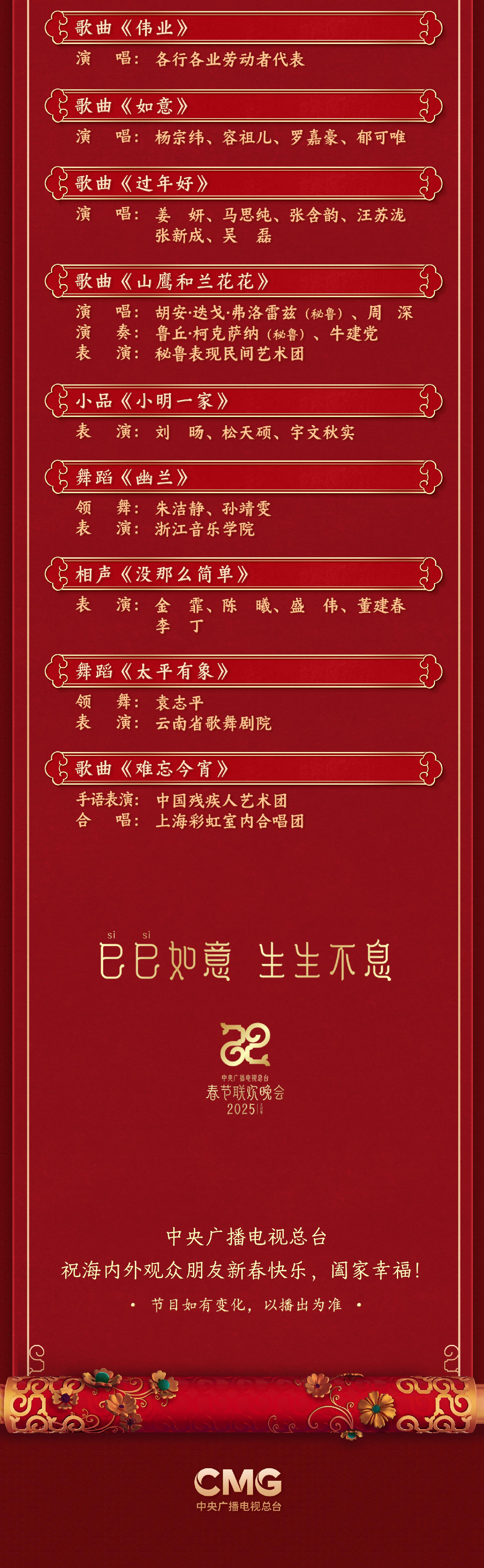 官宣!中央广播电视总台《2025年春节联欢晚会》节目单发布