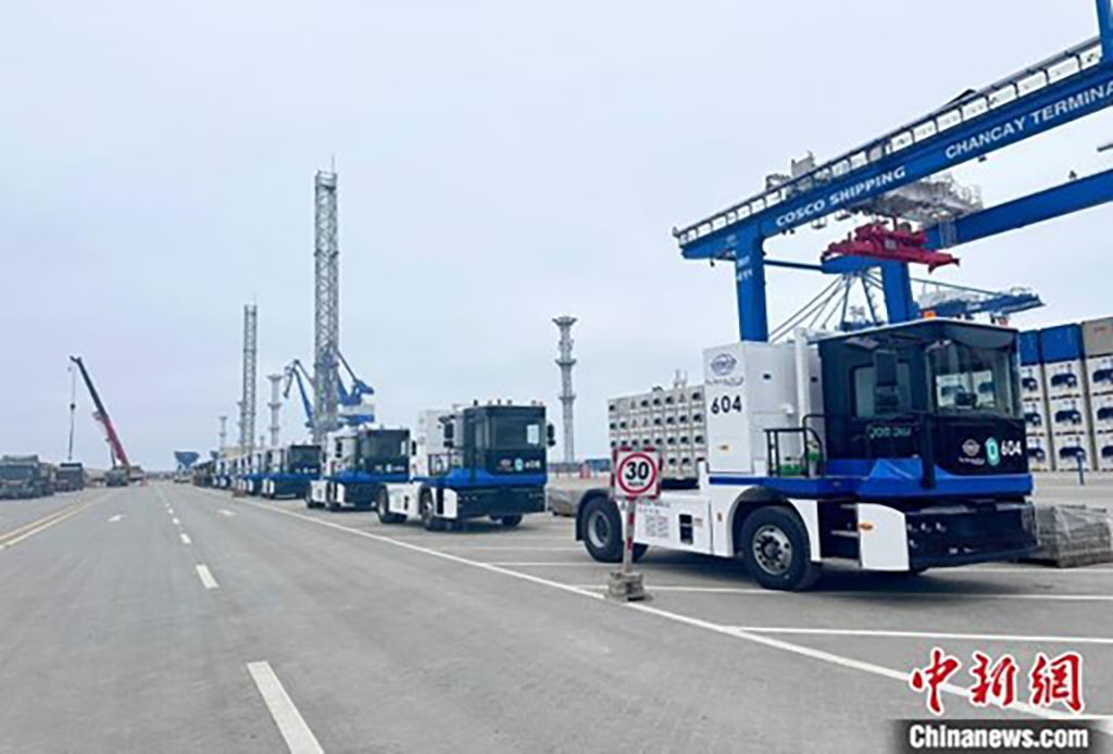 西井科技E-Truck车队助力秘鲁钱凯港自动化建设。西井科技供图